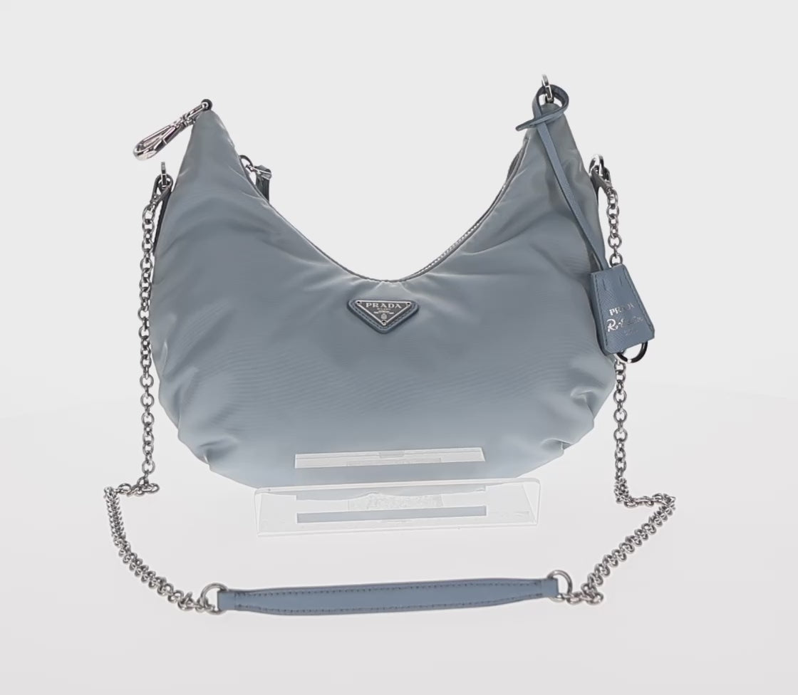 PRADA Chain Shoulder Bag Nylon Light Blue Silver - 145974M