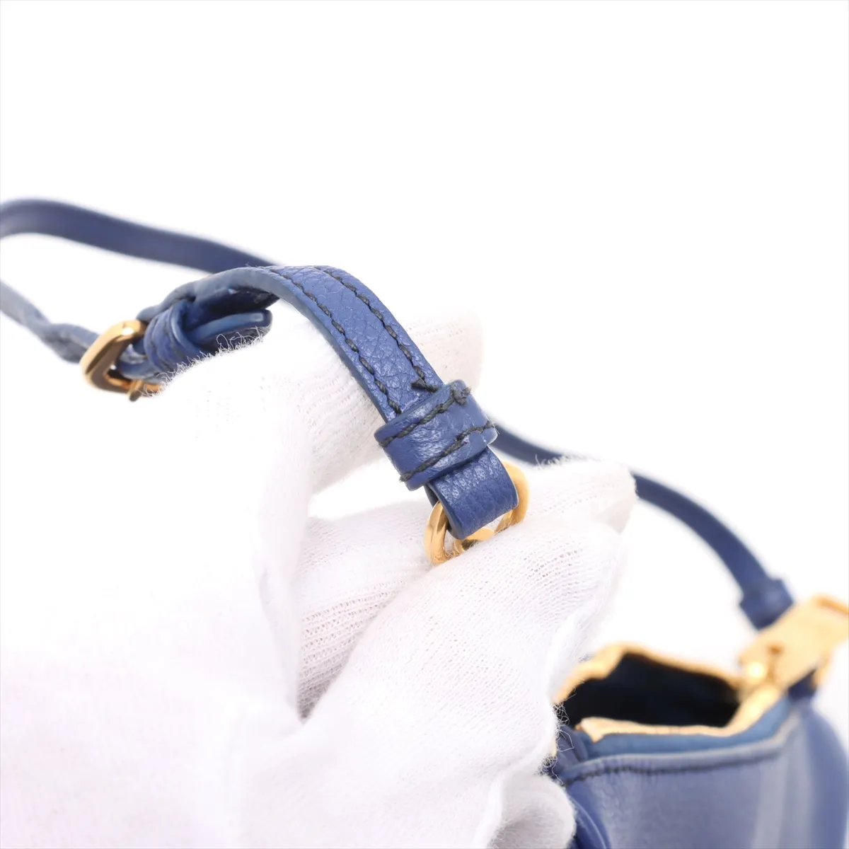 Prada Logo Leather Shoulder bag Blue - #4182