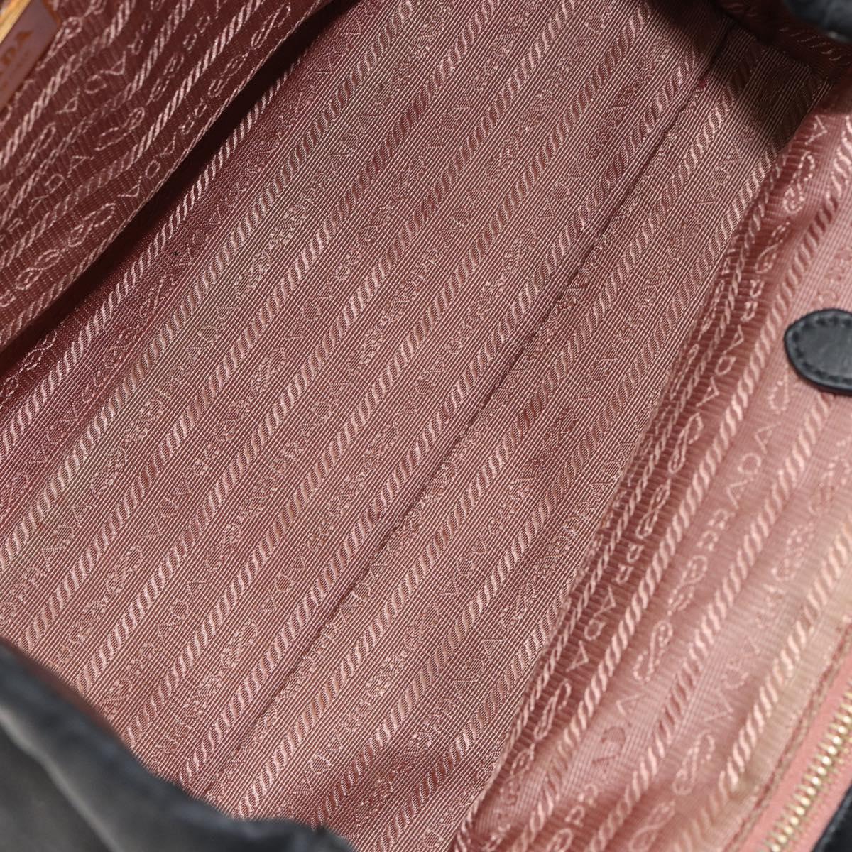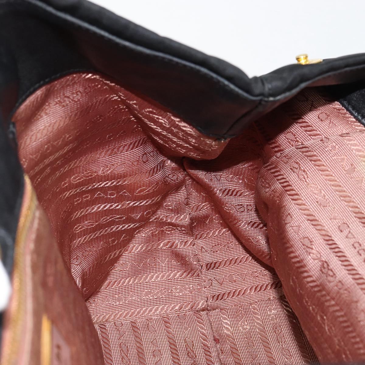 PRADA ribbon Hand Bag Nylon Leather Black Gold - 153236