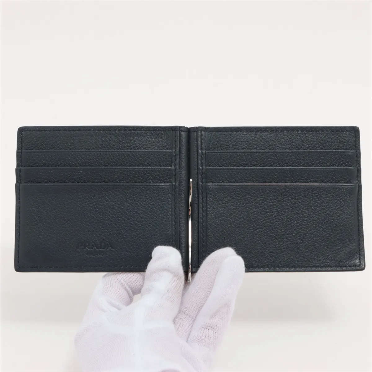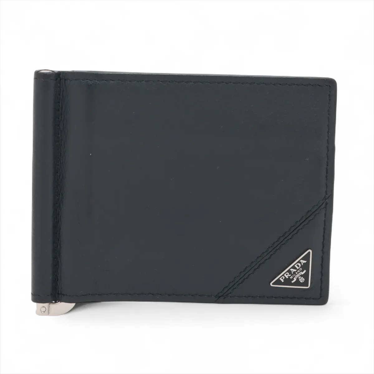 Prada Vitello Grain Leather Money Clip Navy Blue