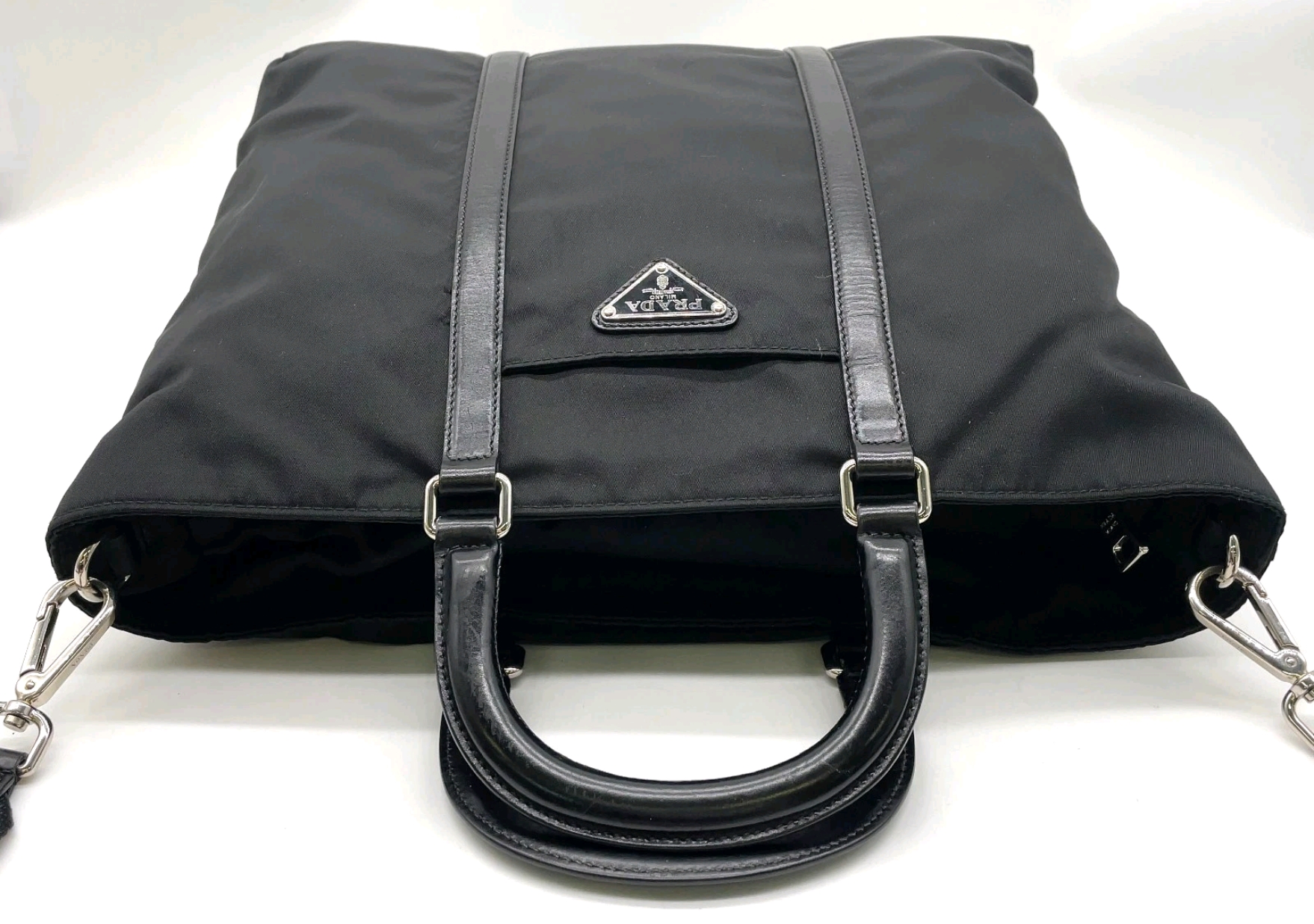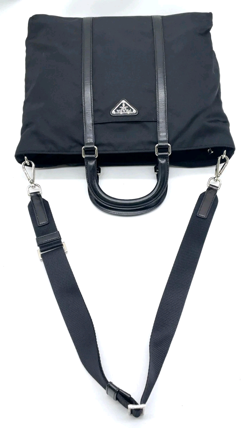 Preowned Prada Triangle Logo Nylon Leather Black 2WAY Shoulder Bag NS111567