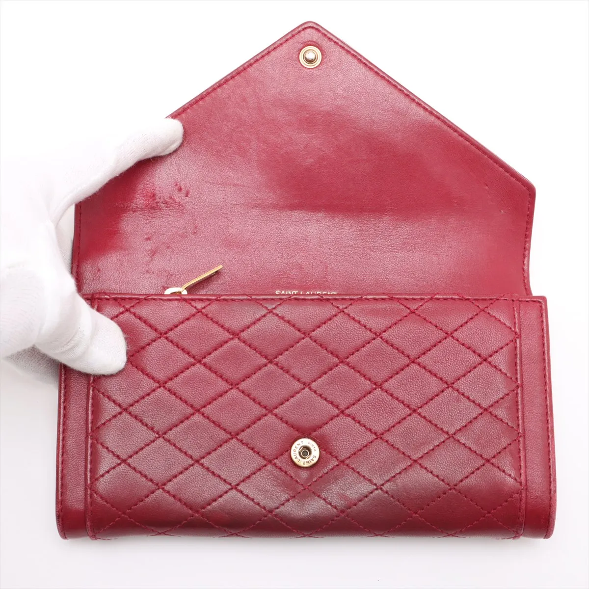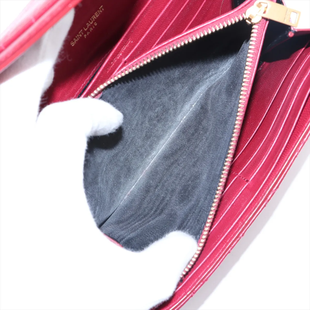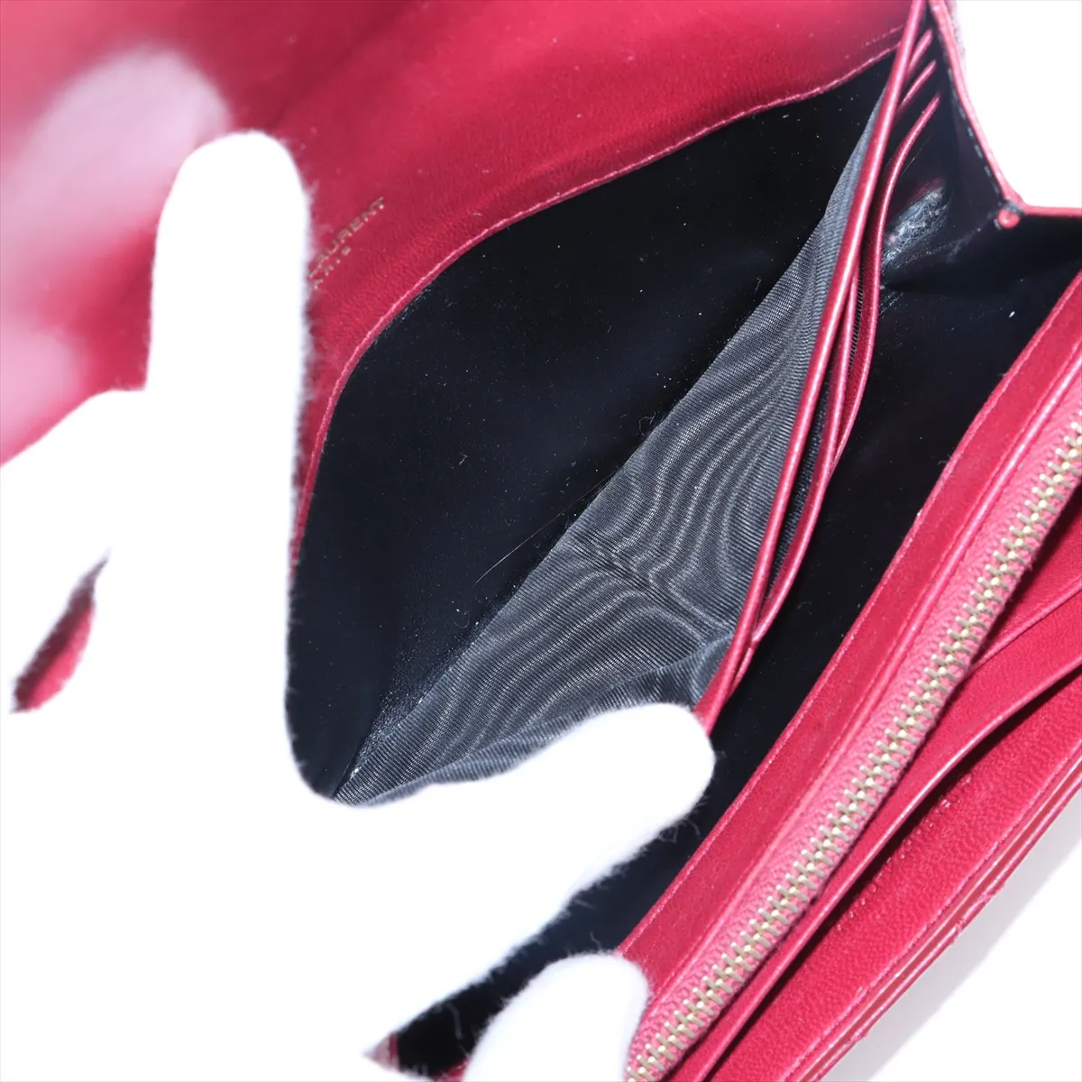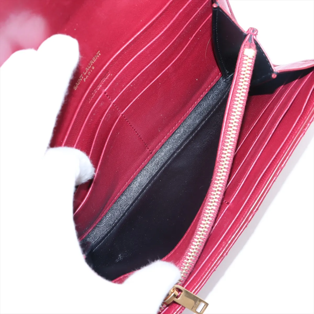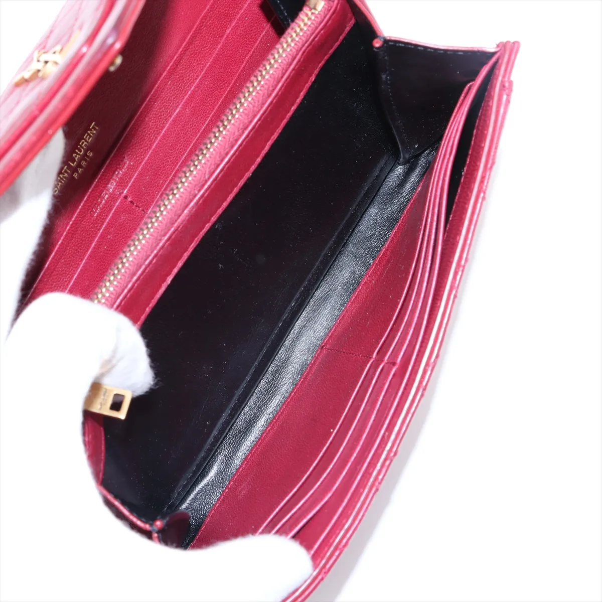 Saint Laurent Paris YSL line Leather Long Wallet Red - #5122