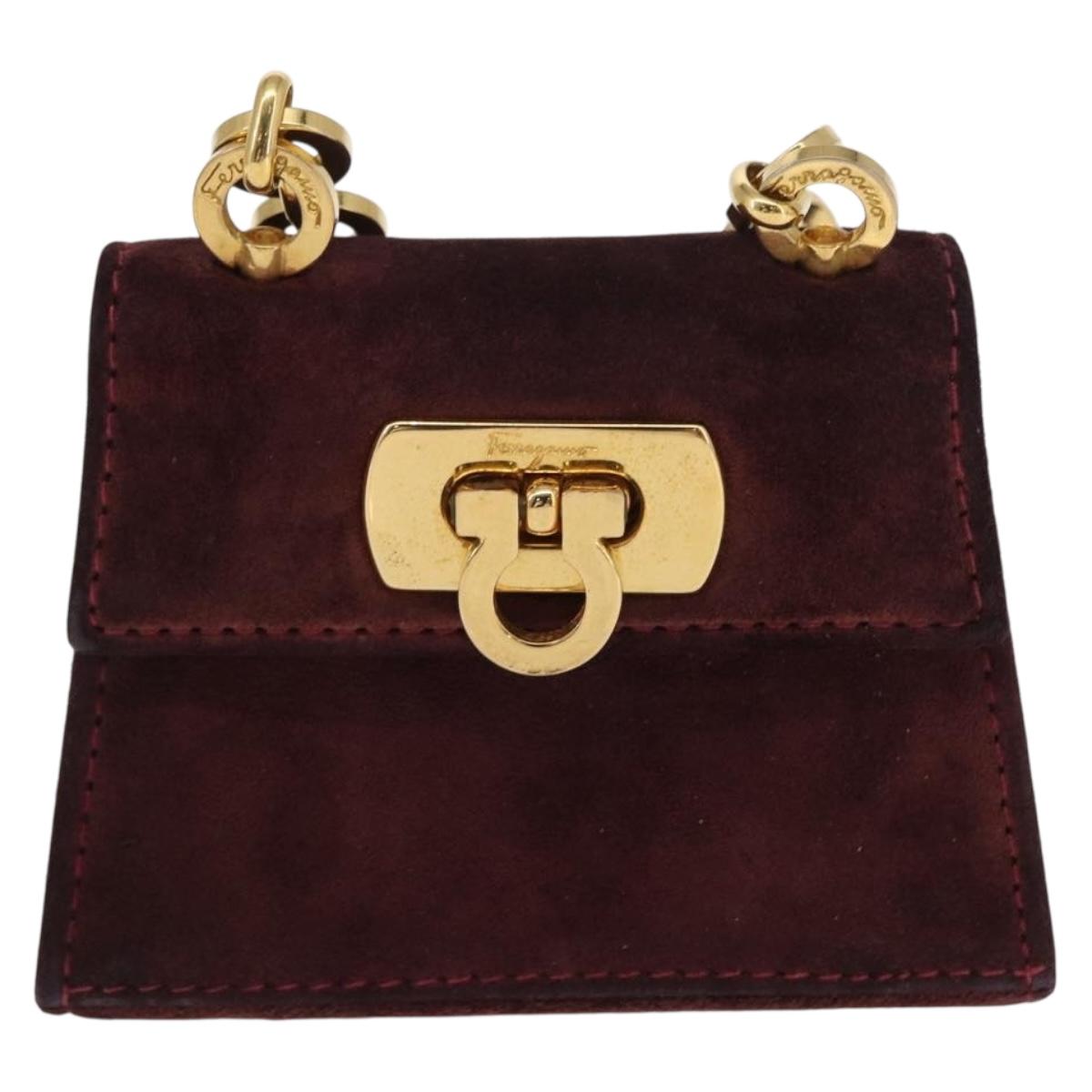 Salvatore Ferragamo Chain Gancini Shoulder Bag Suede Purple Gold - 152790
