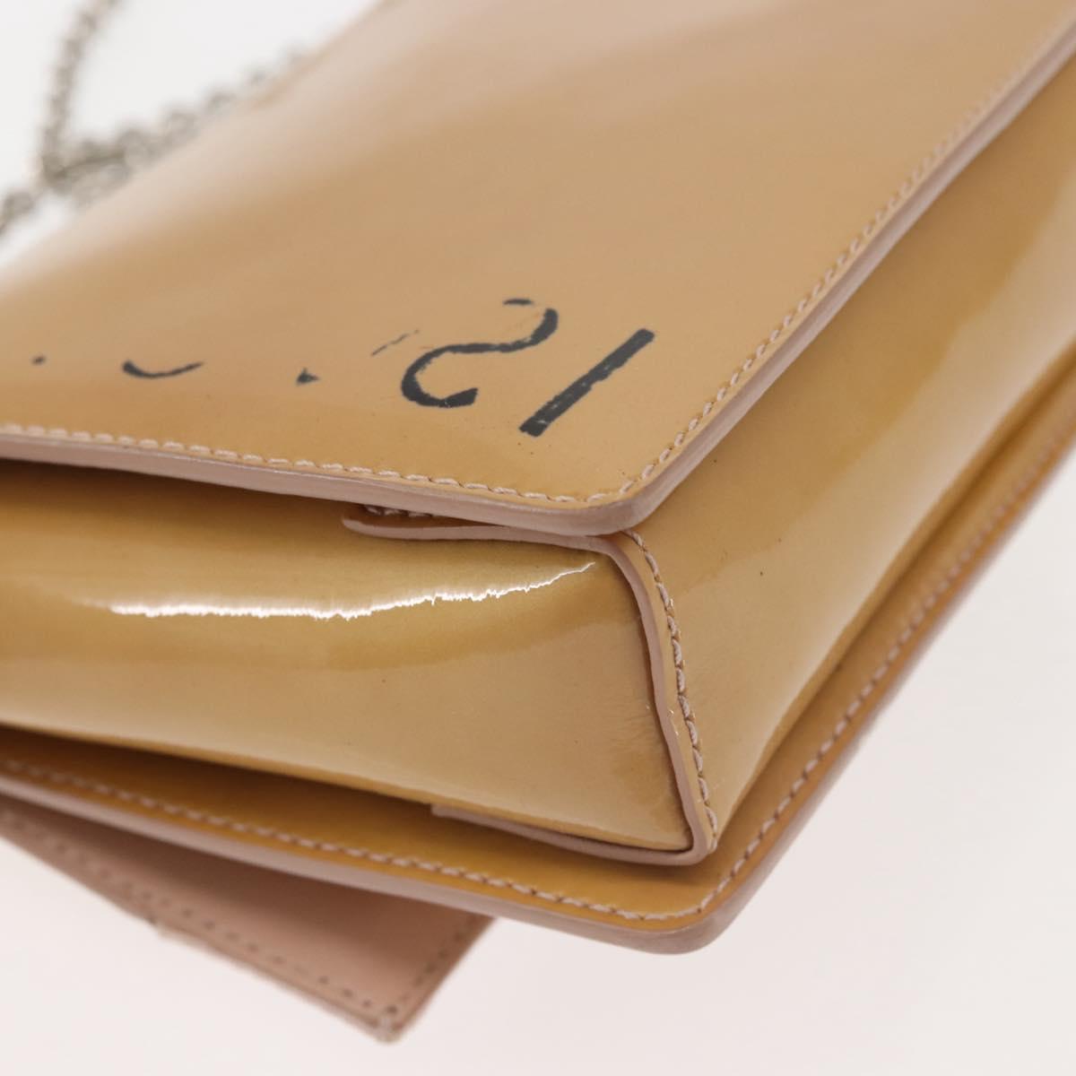 Salvatore Ferragamo Chain Vala Shoulder Bag Enamel Beige Silver - 143357