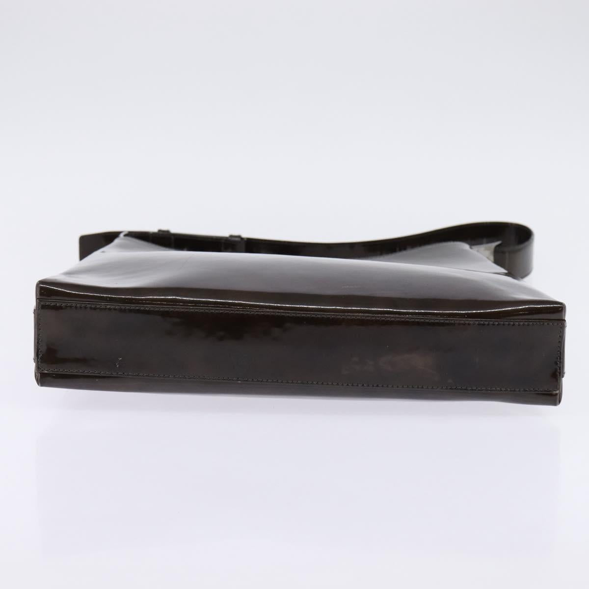 Salvatore Ferragamo Chain Vala Shoulder Bag Enamel Brown Silver - 143223