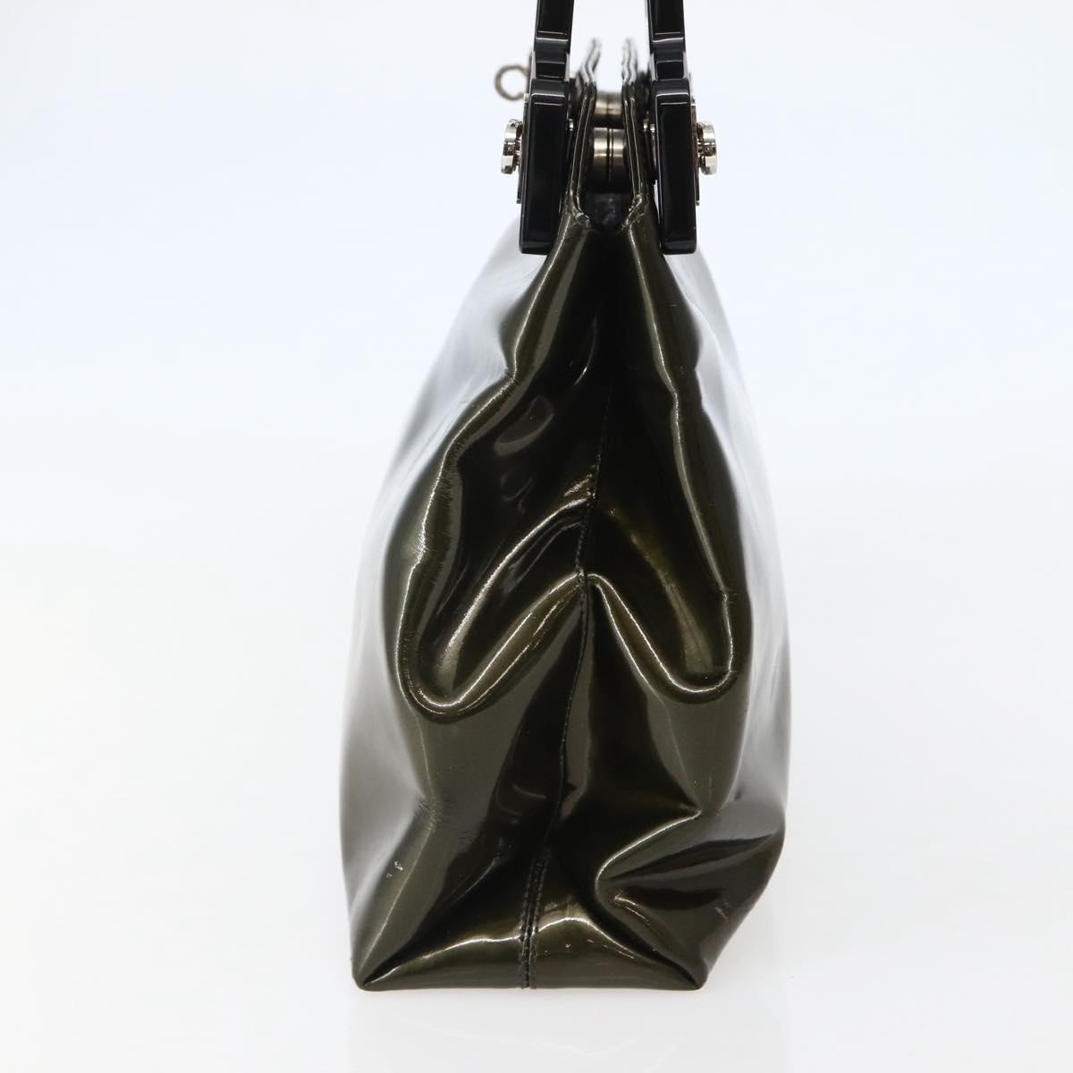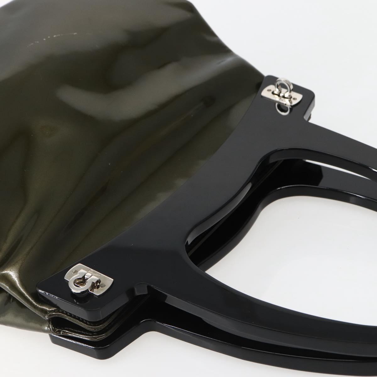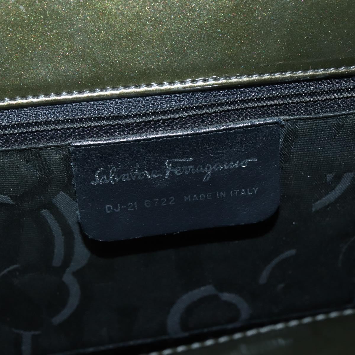 Salvatore Ferragamo Gancini Bag Patent leather Silver Olive Green - bs29443