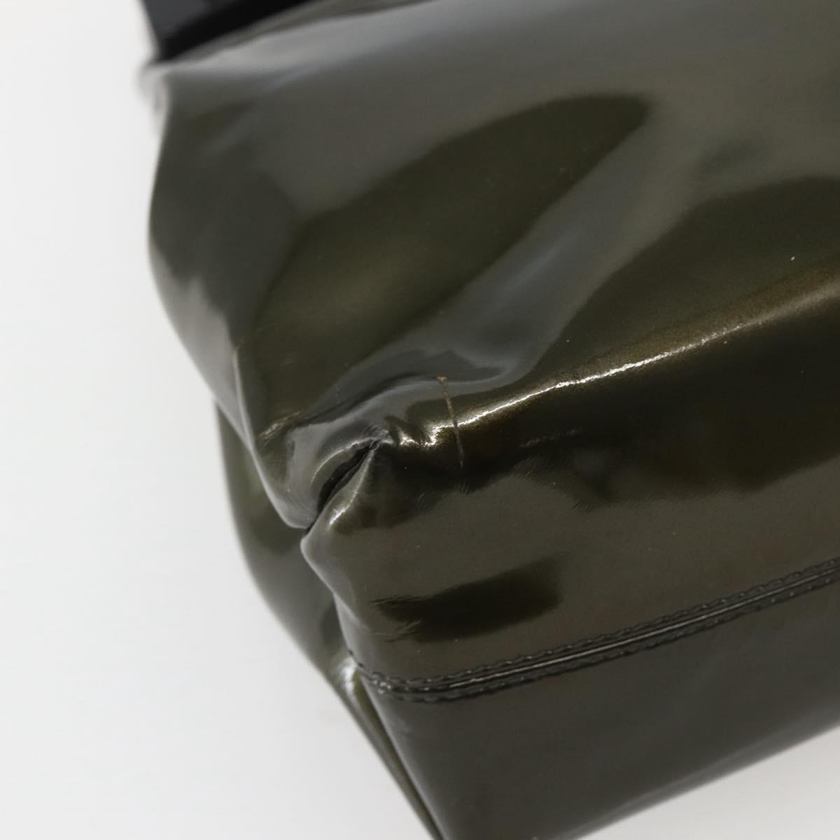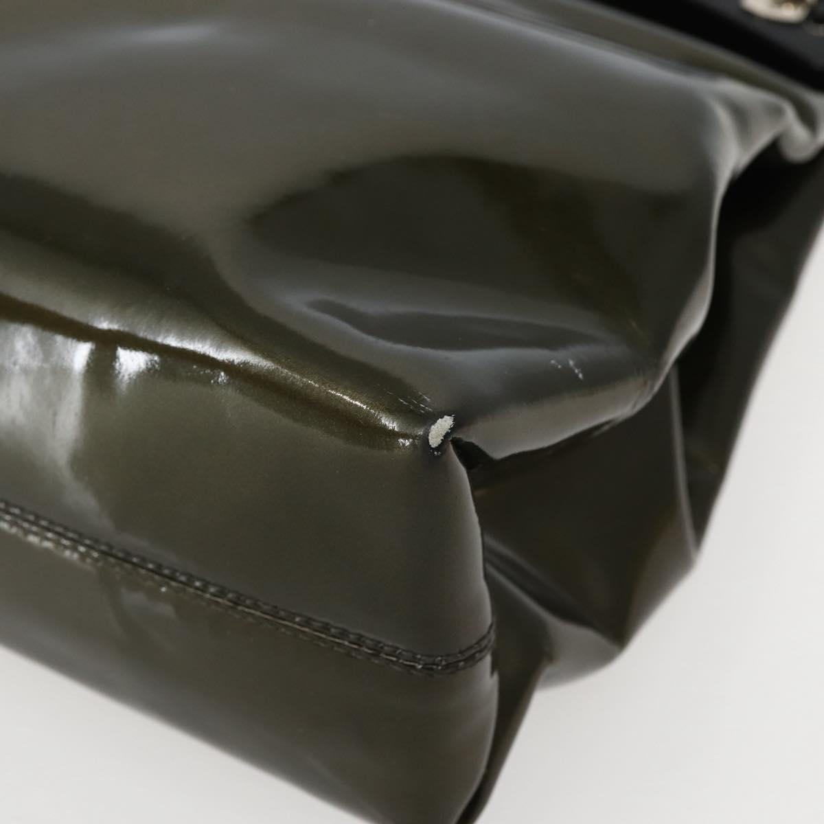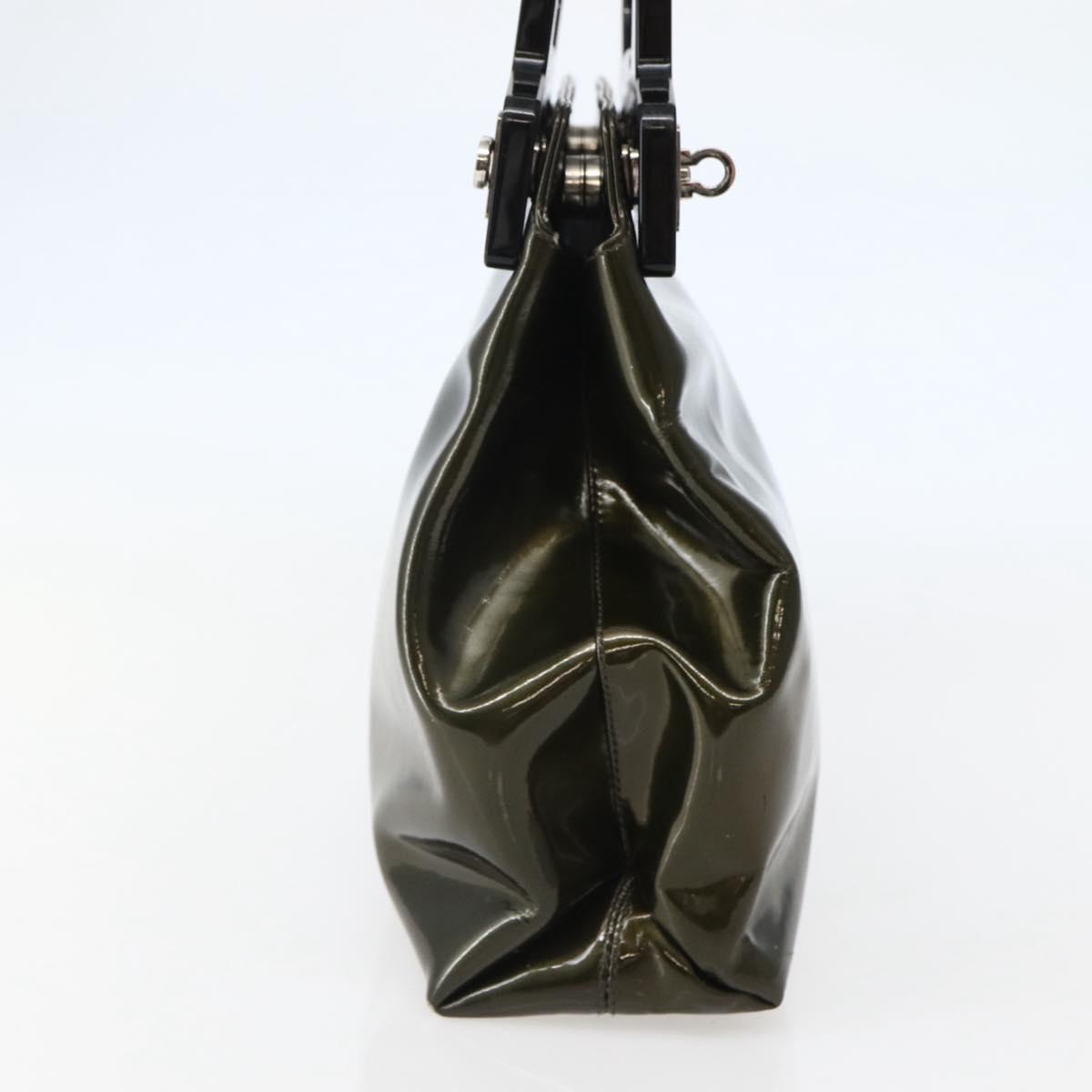Salvatore Ferragamo Gancini Bag Patent leather Silver Olive Green - bs29443