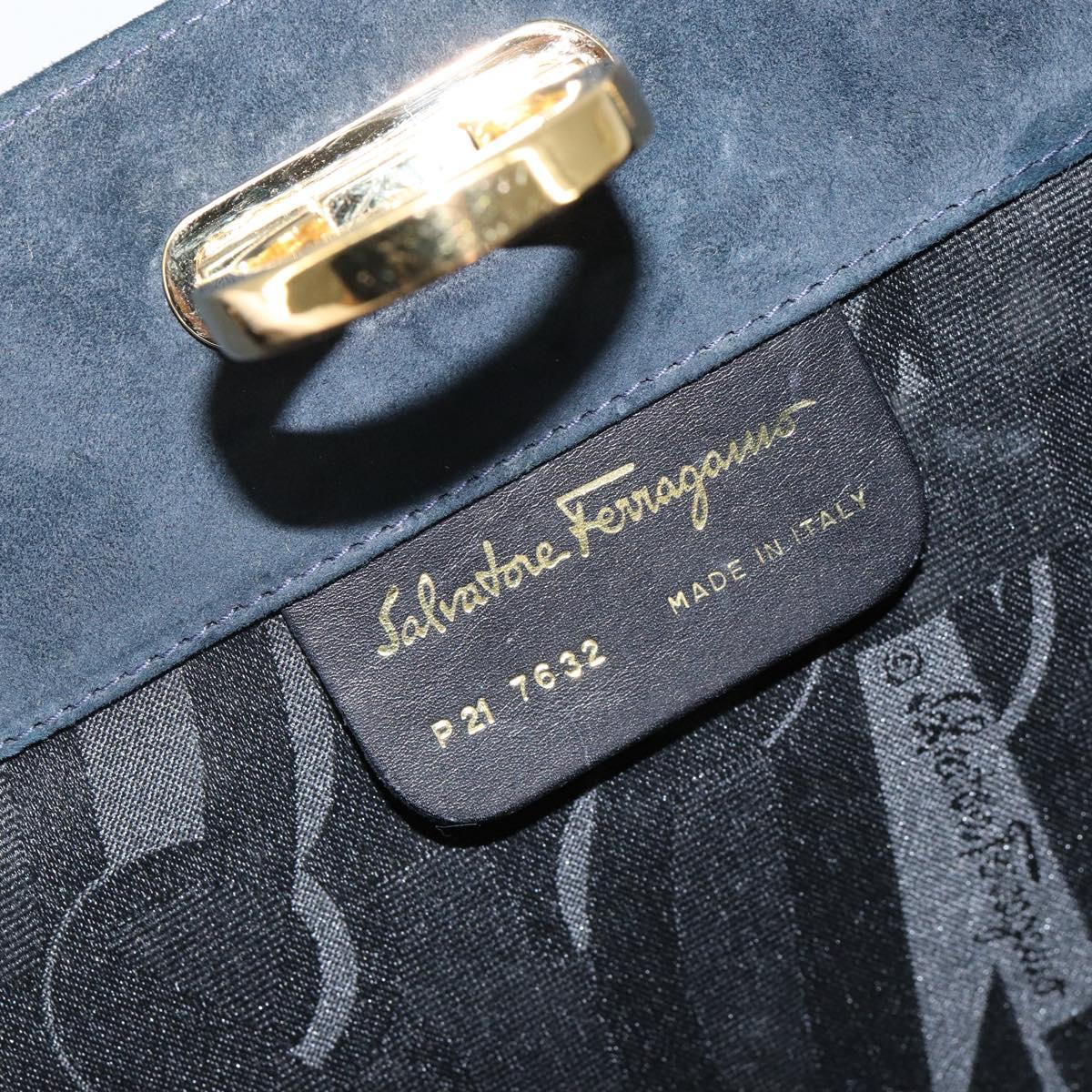 Salvatore Ferragamo Gancini Chain Shoulder Bag Suede Navy Gold - 142891
