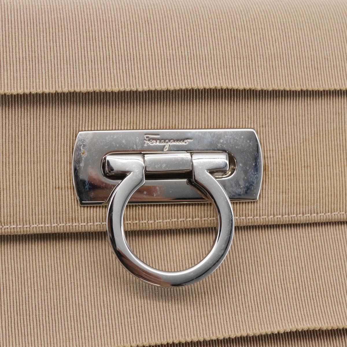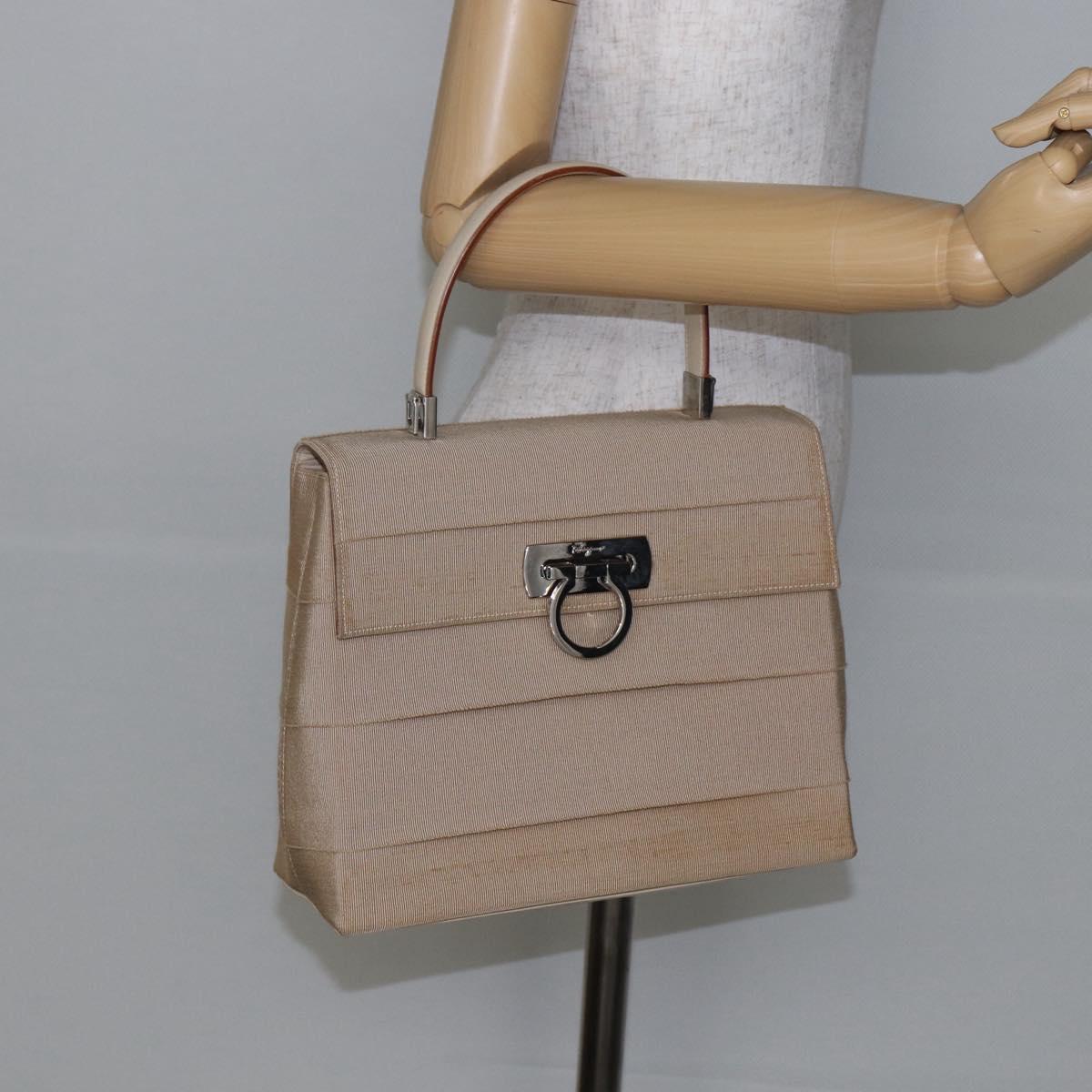 Salvatore Ferragamo Gancini Hand Bag Canvas Beige Silver - BA6378