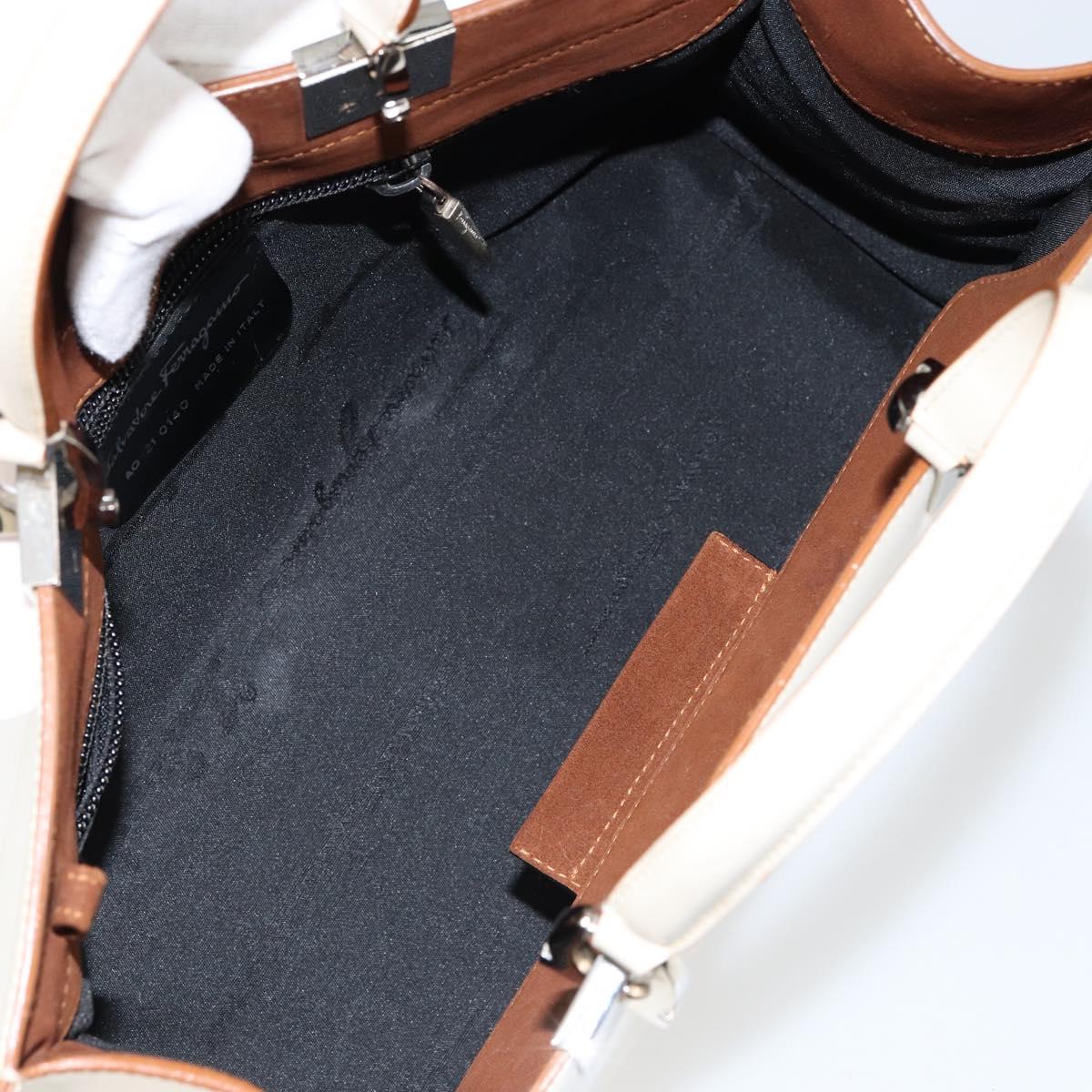Salvatore Ferragamo Gancini Hand Bag Leather White Silver - BA7061