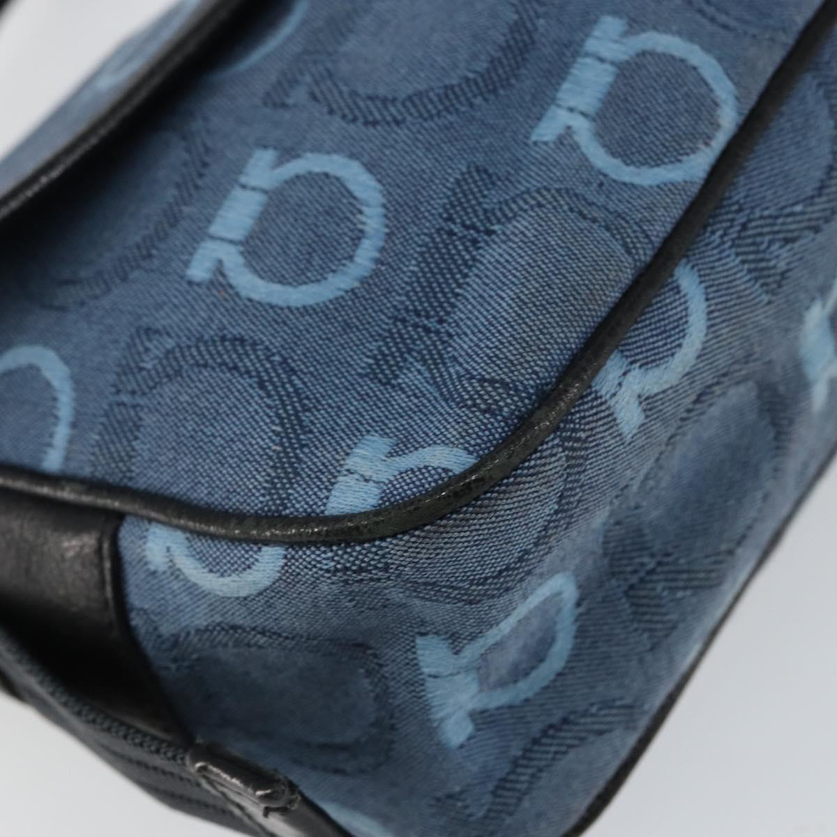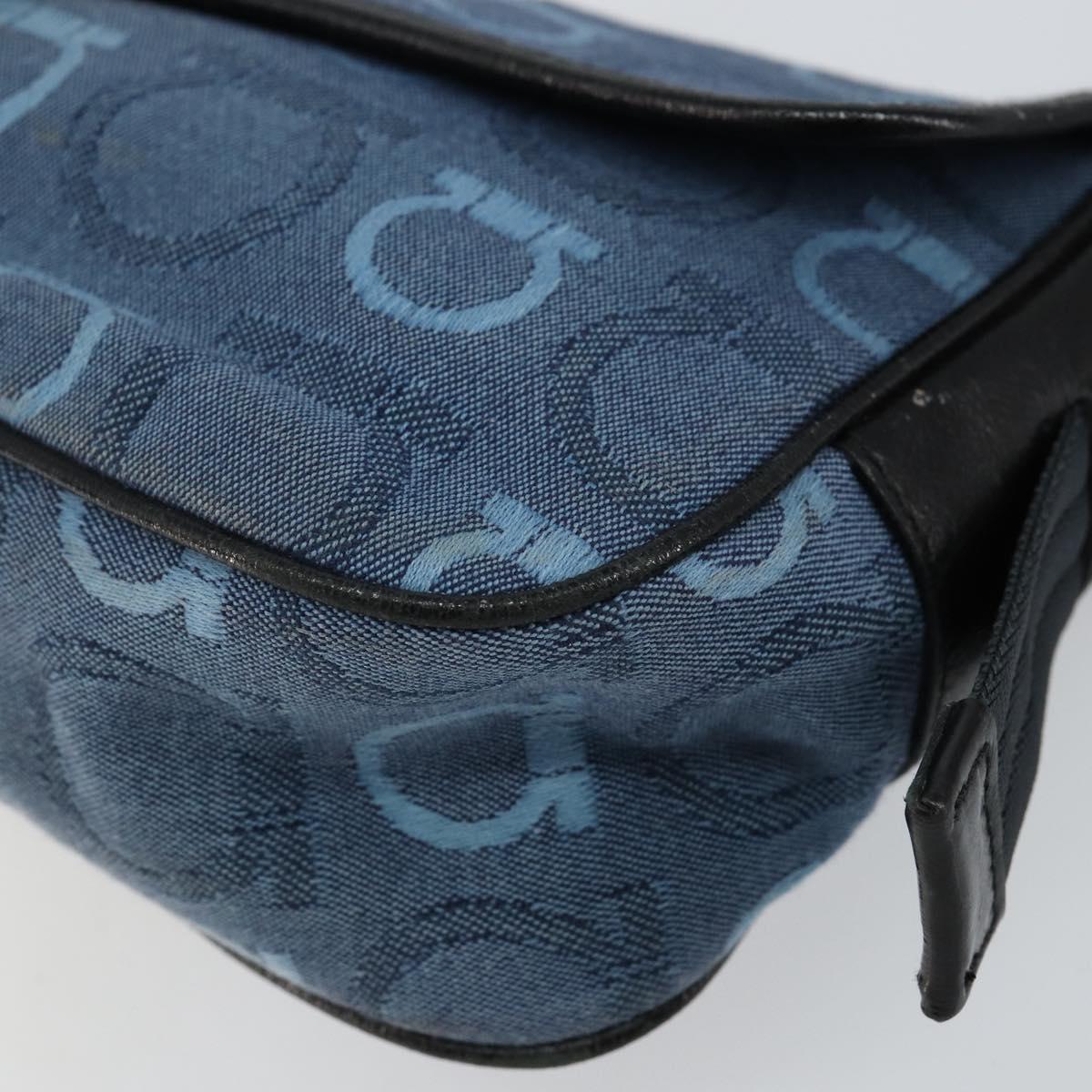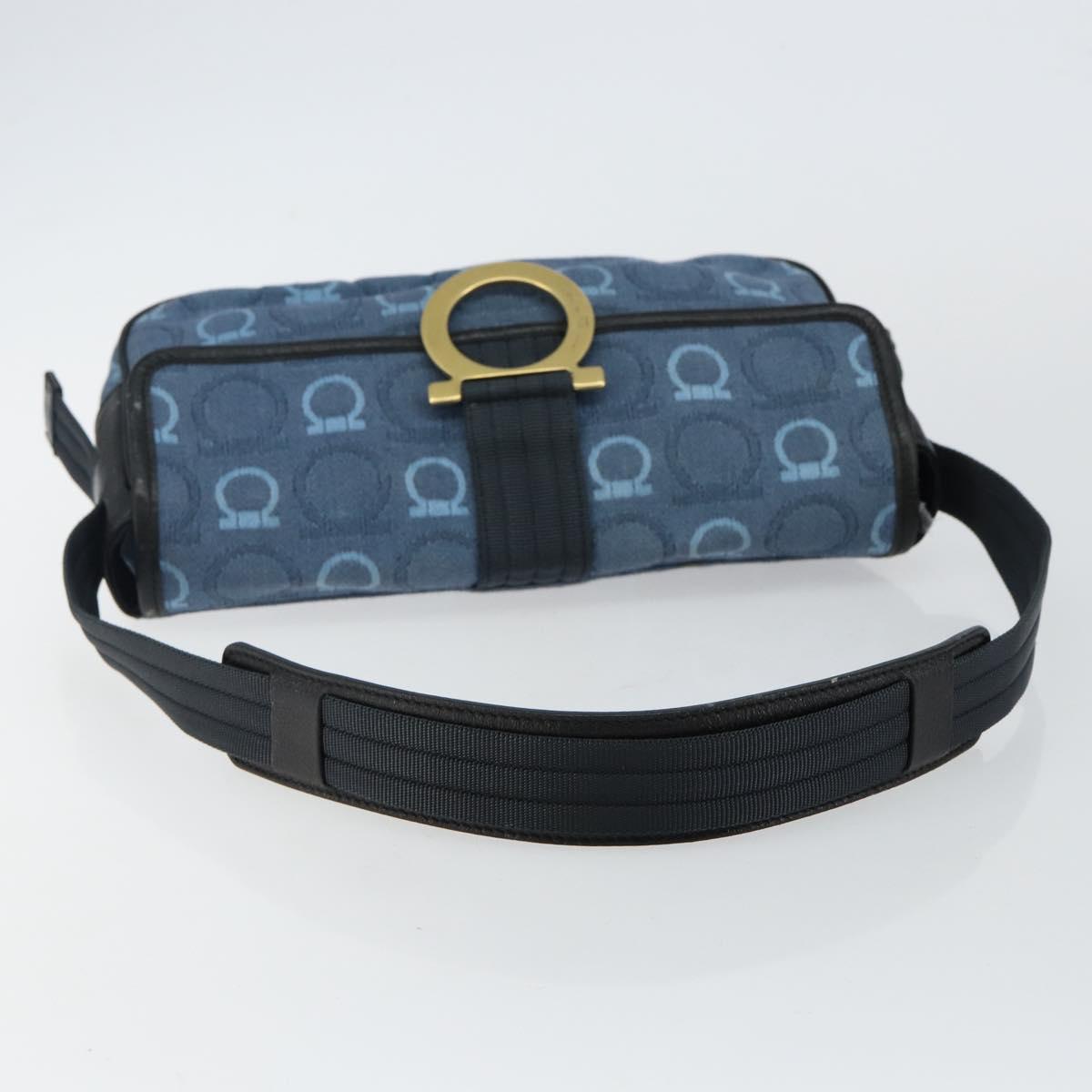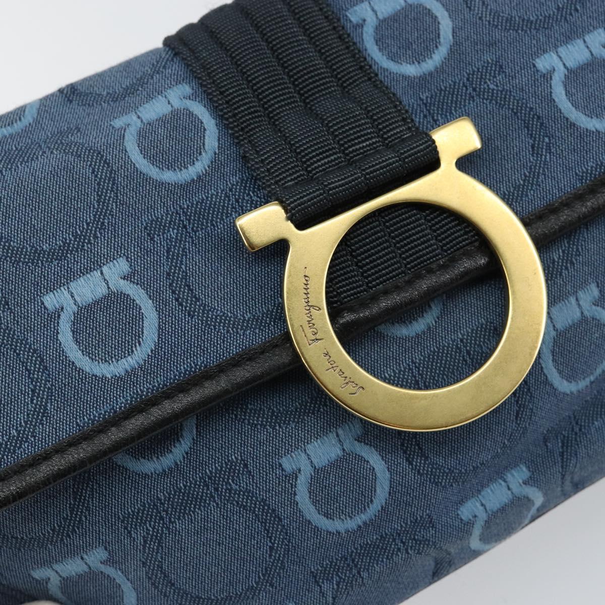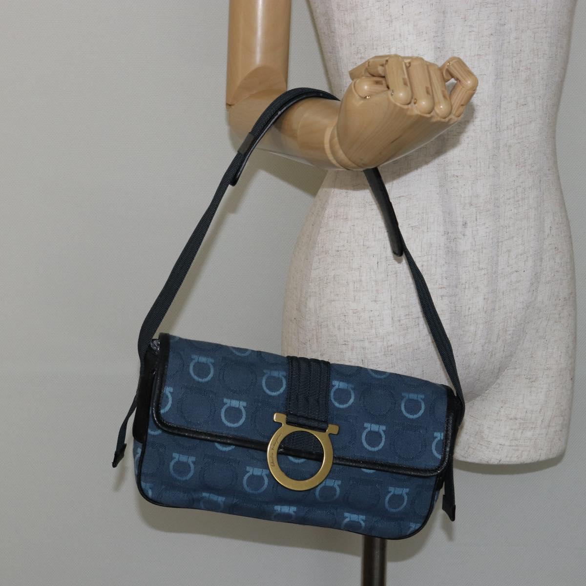 Salvatore Ferragamo Gancini Shoulder Bag Canvas Navy Gold - BA5868