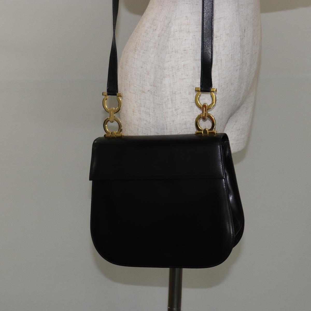 Salvatore Ferragamo Gancini Shoulder Bag Leather Black Gold - bs29116