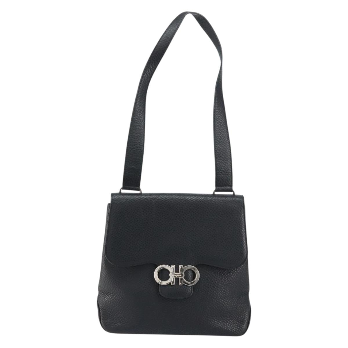 Salvatore Ferragamo Gancini Shoulder Bag Leather Black Silver - BA8229