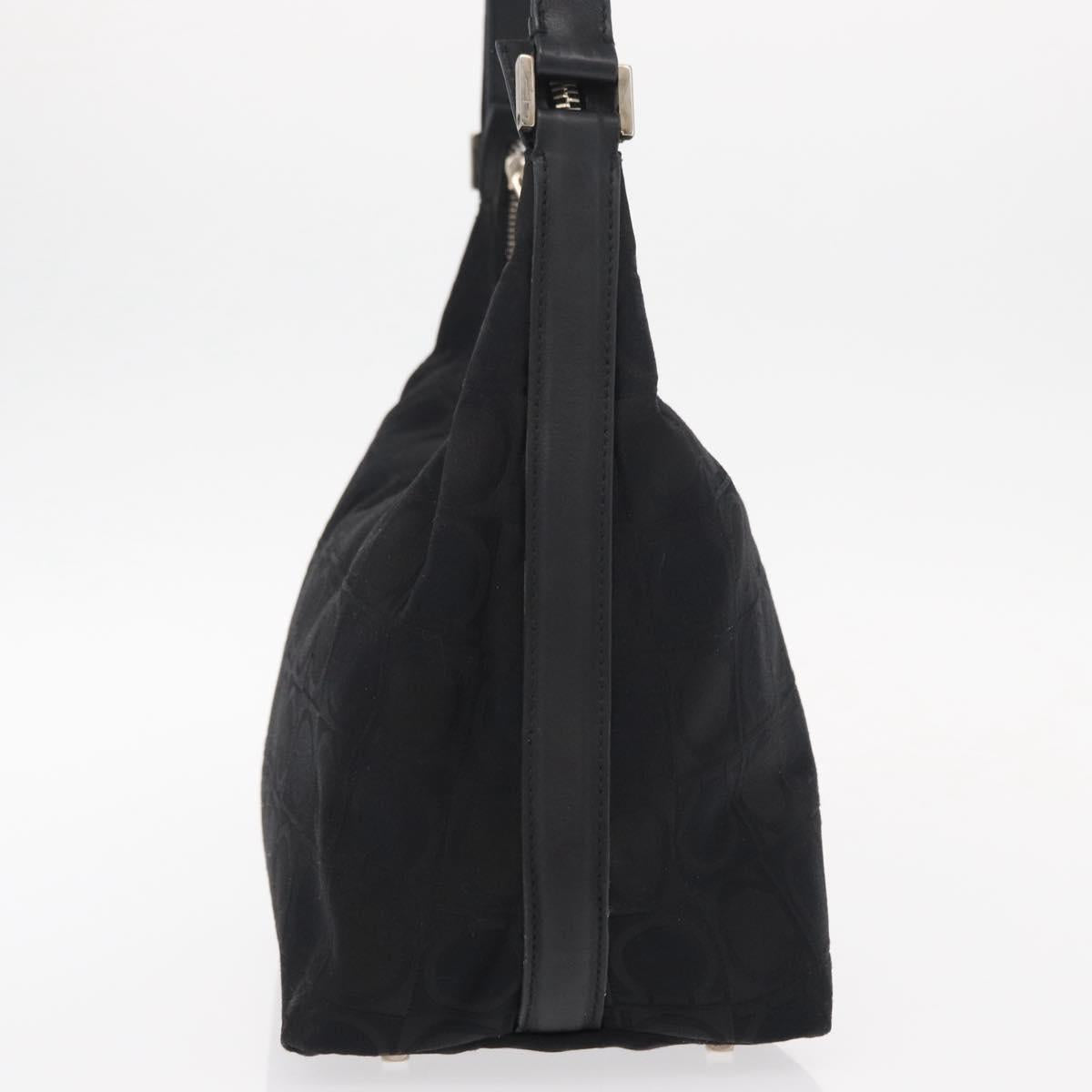 Salvatore Ferragamo Gancini Shoulder Bag Leather Nylon Black Silver - bs30802