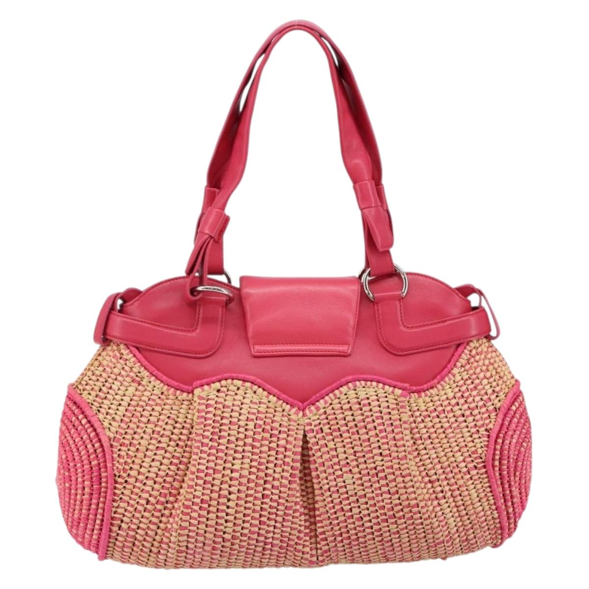 Salvatore Ferragamo Gancini Shoulder Bag Raffia Pink Silver - 143084