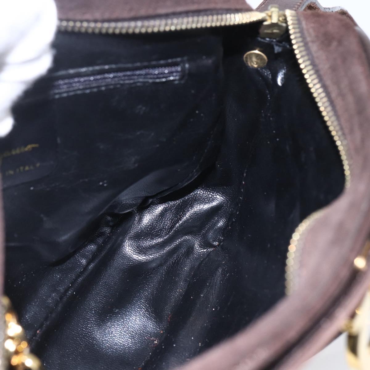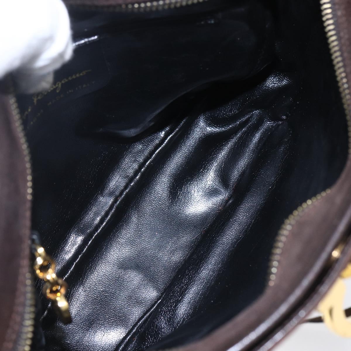 Salvatore Ferragamo Gancini Shoulder Bag Suede Brown Gold - 155065