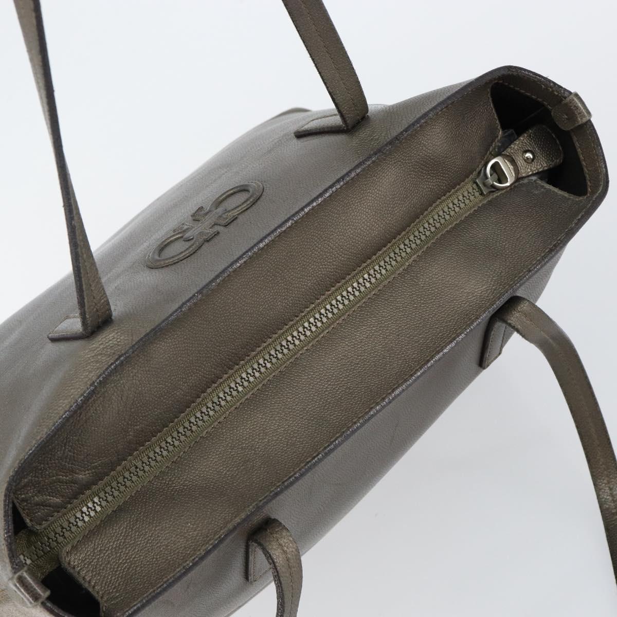 Salvatore Ferragamo Gancini Tote Bag Leather Beige Silver - hk2986