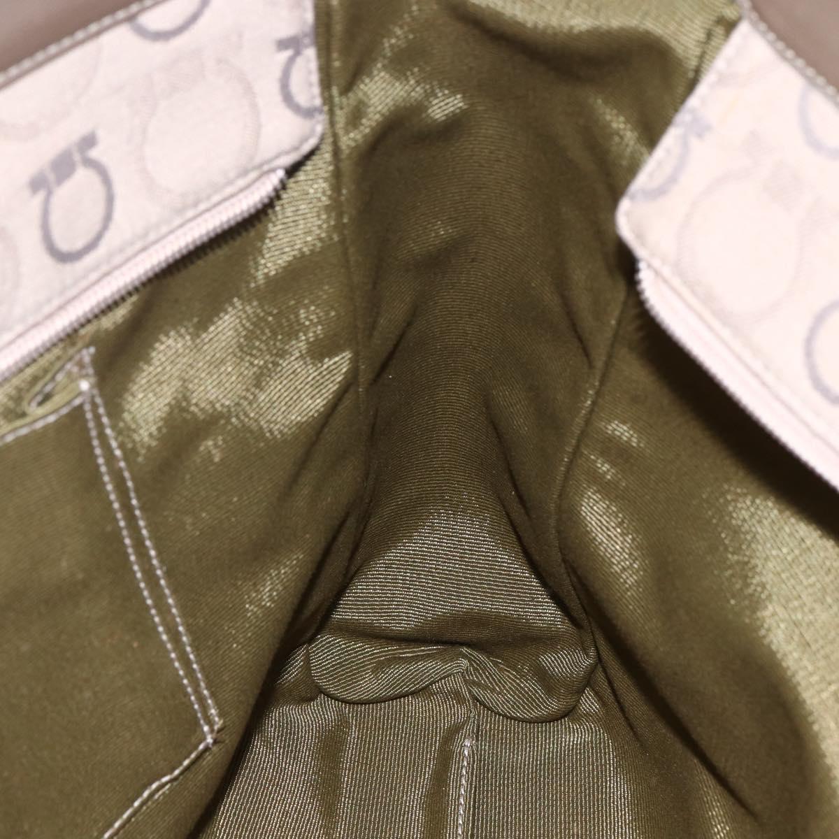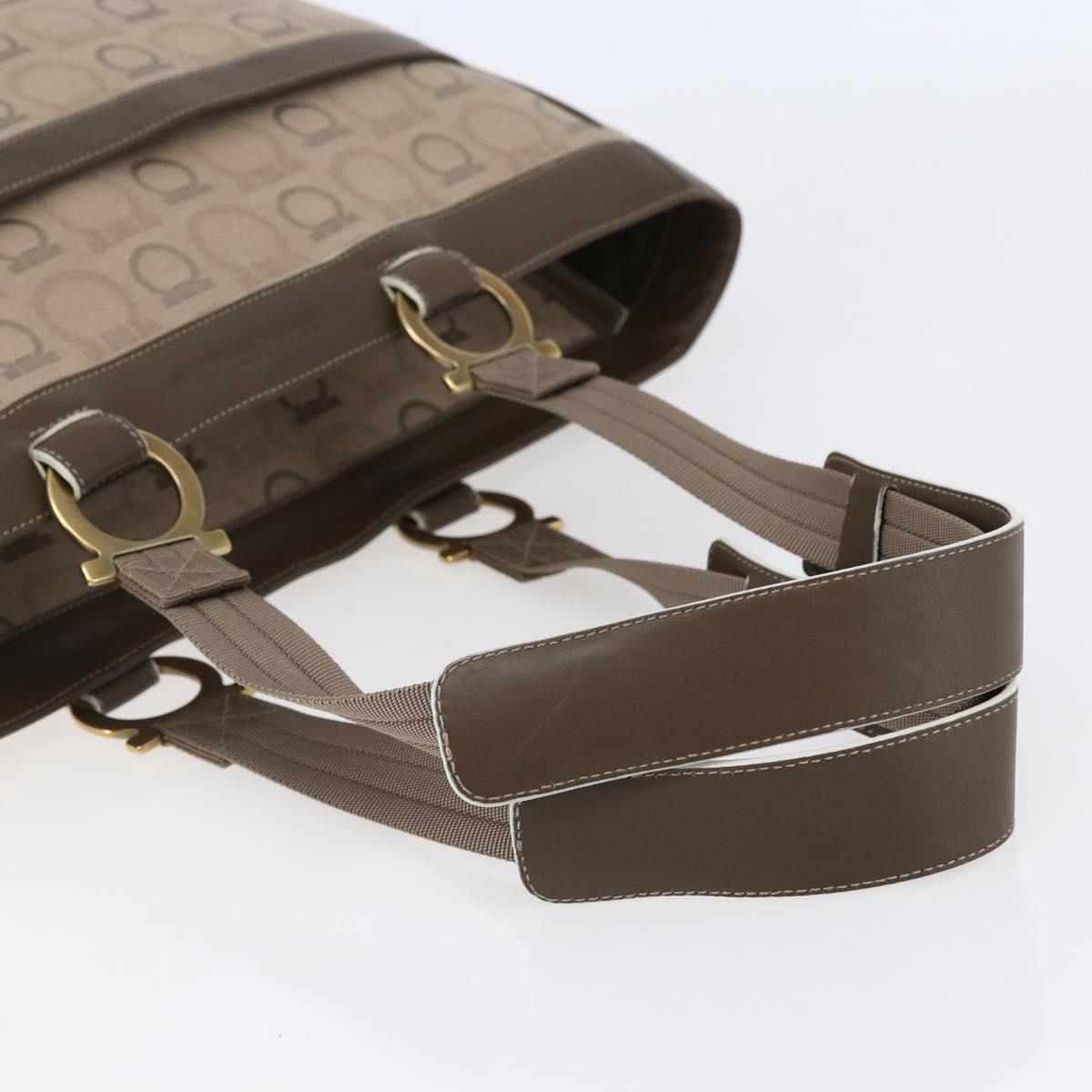 Salvatore Ferragamo Gancini Tote Bag Leather Canvas Beige Gold - BA5709