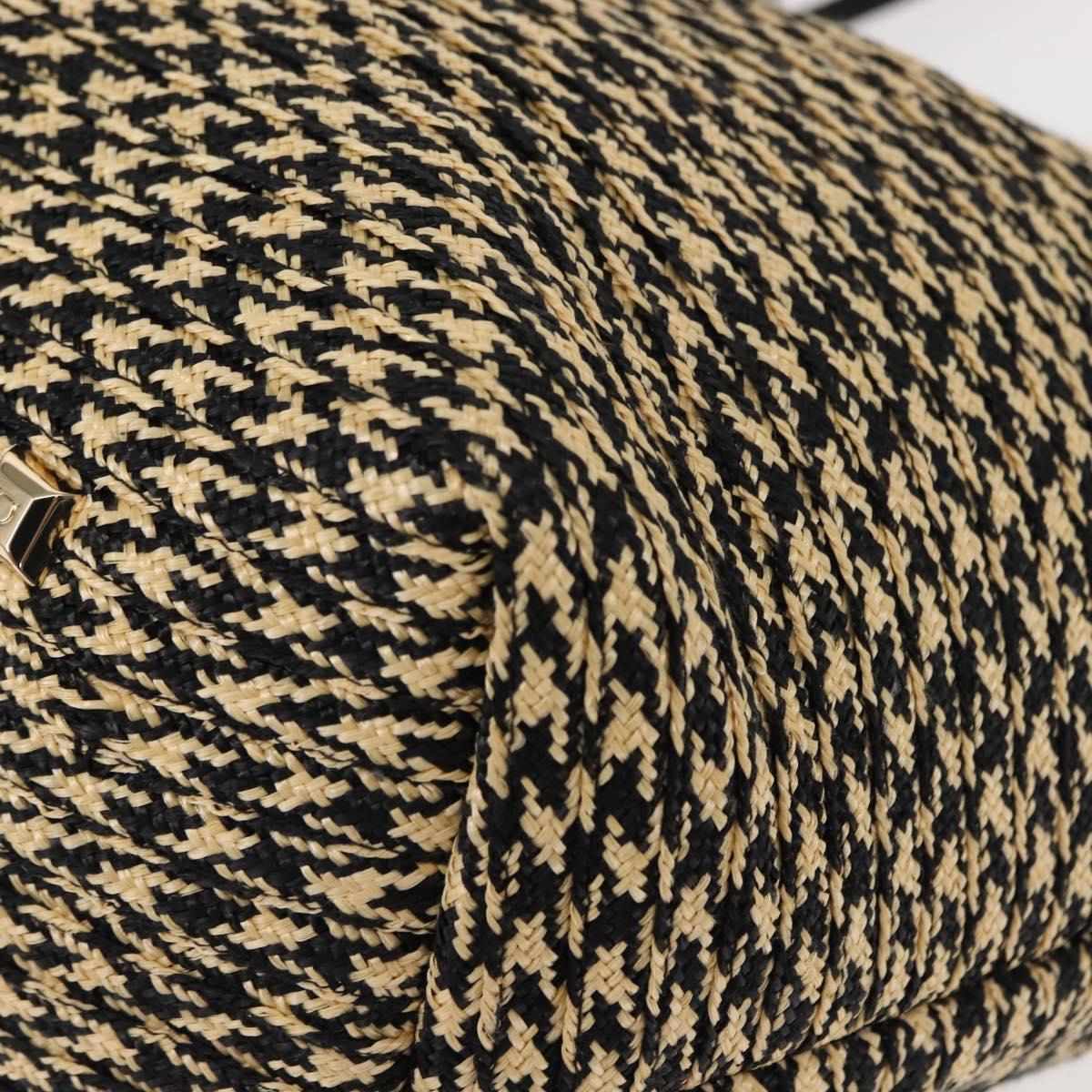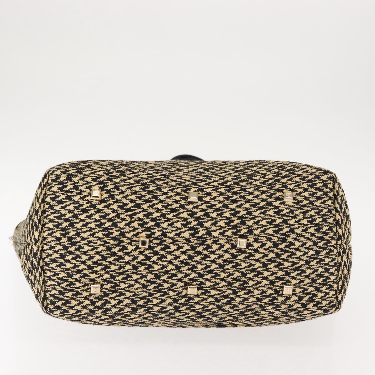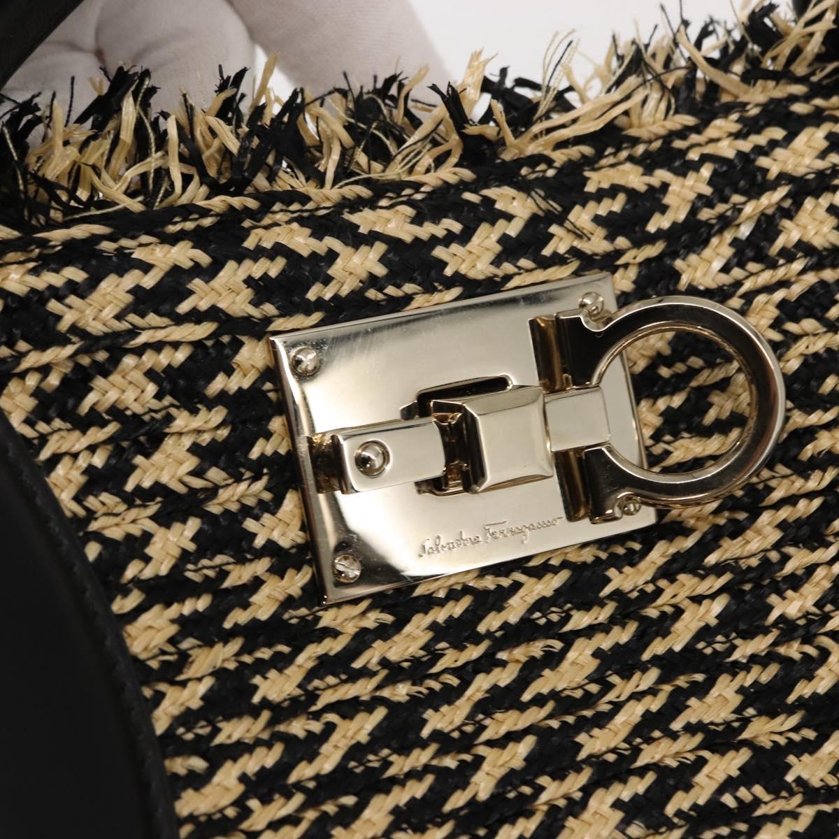 Salvatore Ferragamo Gancini Tote Bag Raffia Leather Black Silver - 148033
