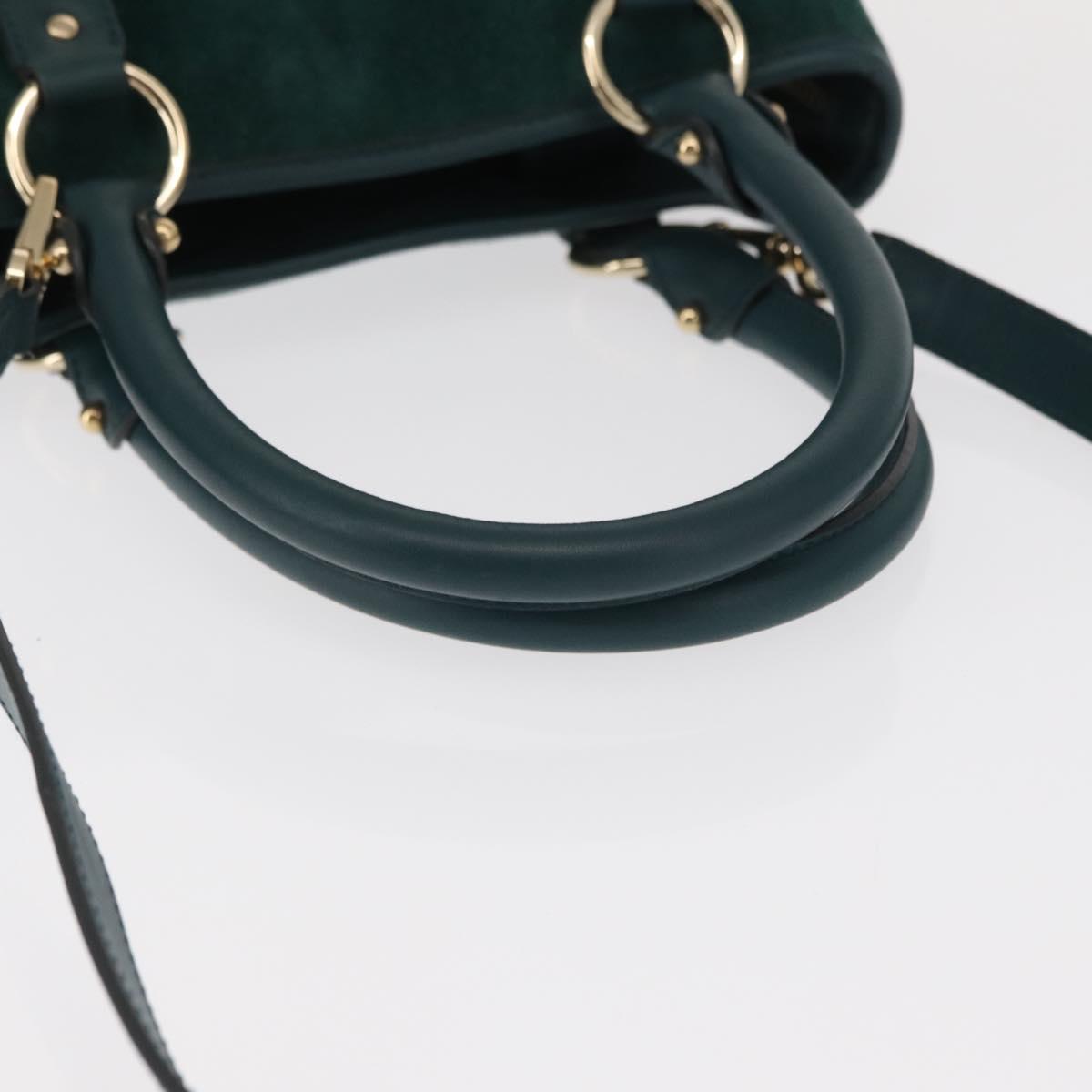 Salvatore Ferragamo Hand Bag Suede 2way Green Gold - 156967