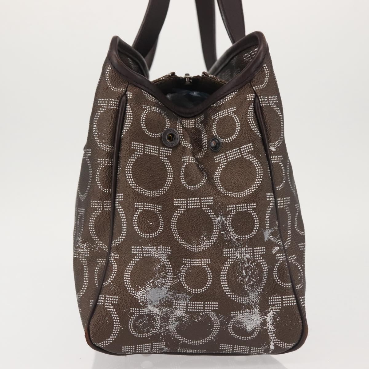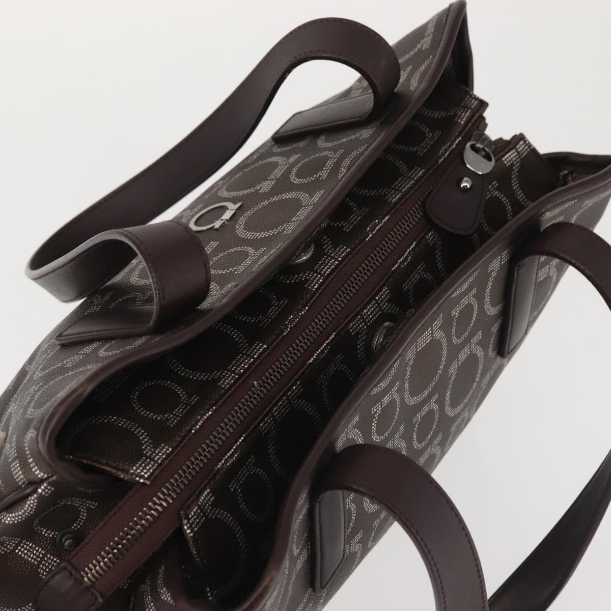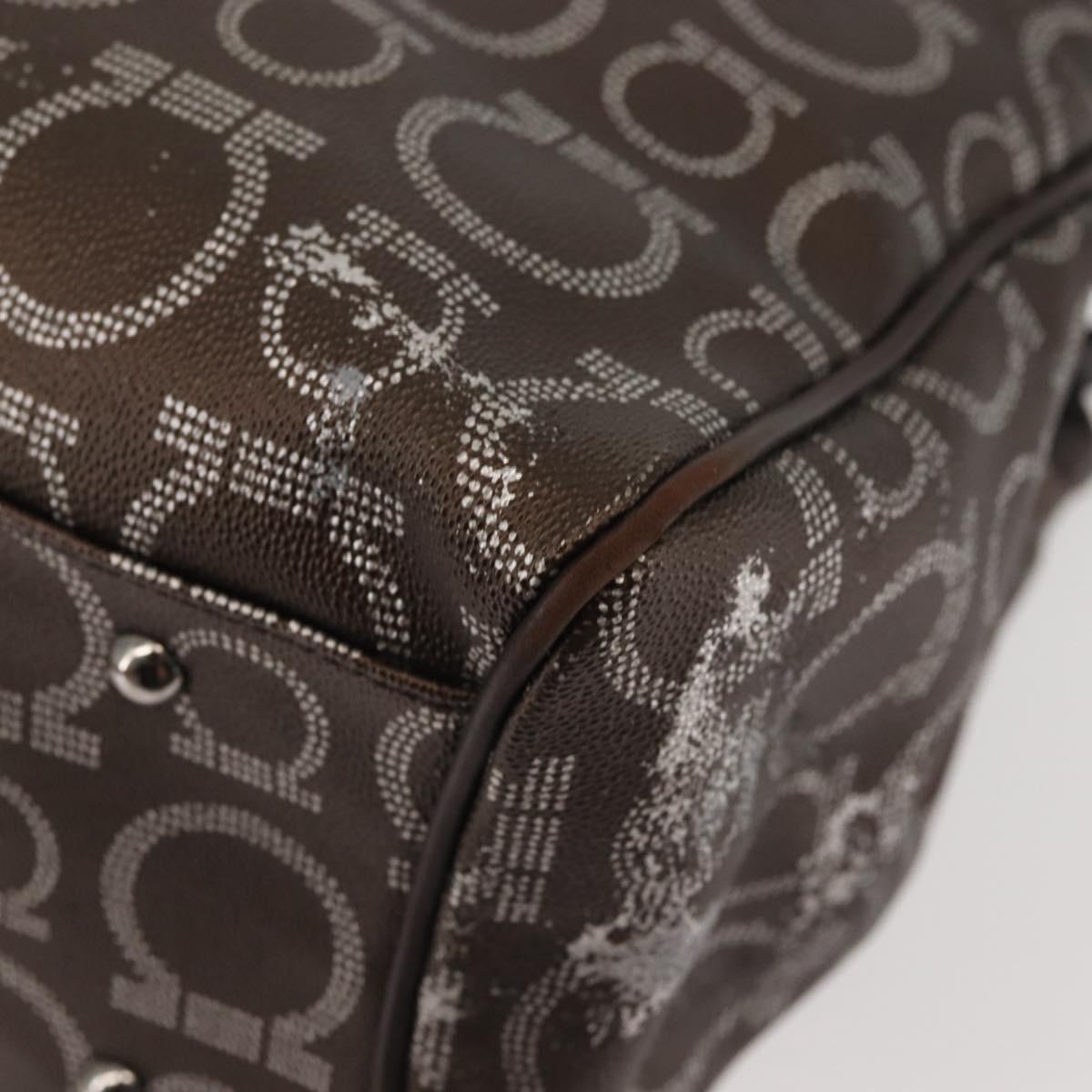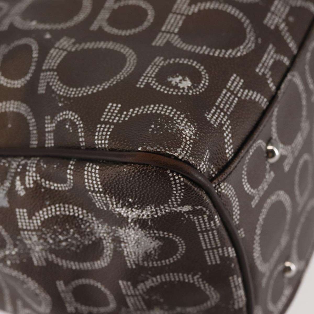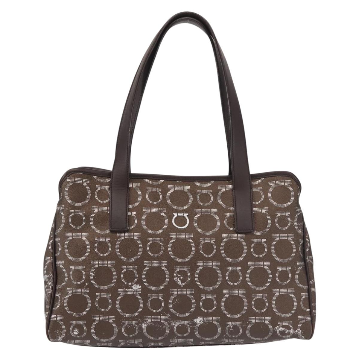 Salvatore Ferragamo Shoulder Bag PVC Leather Dark Brown Silver - BA4805