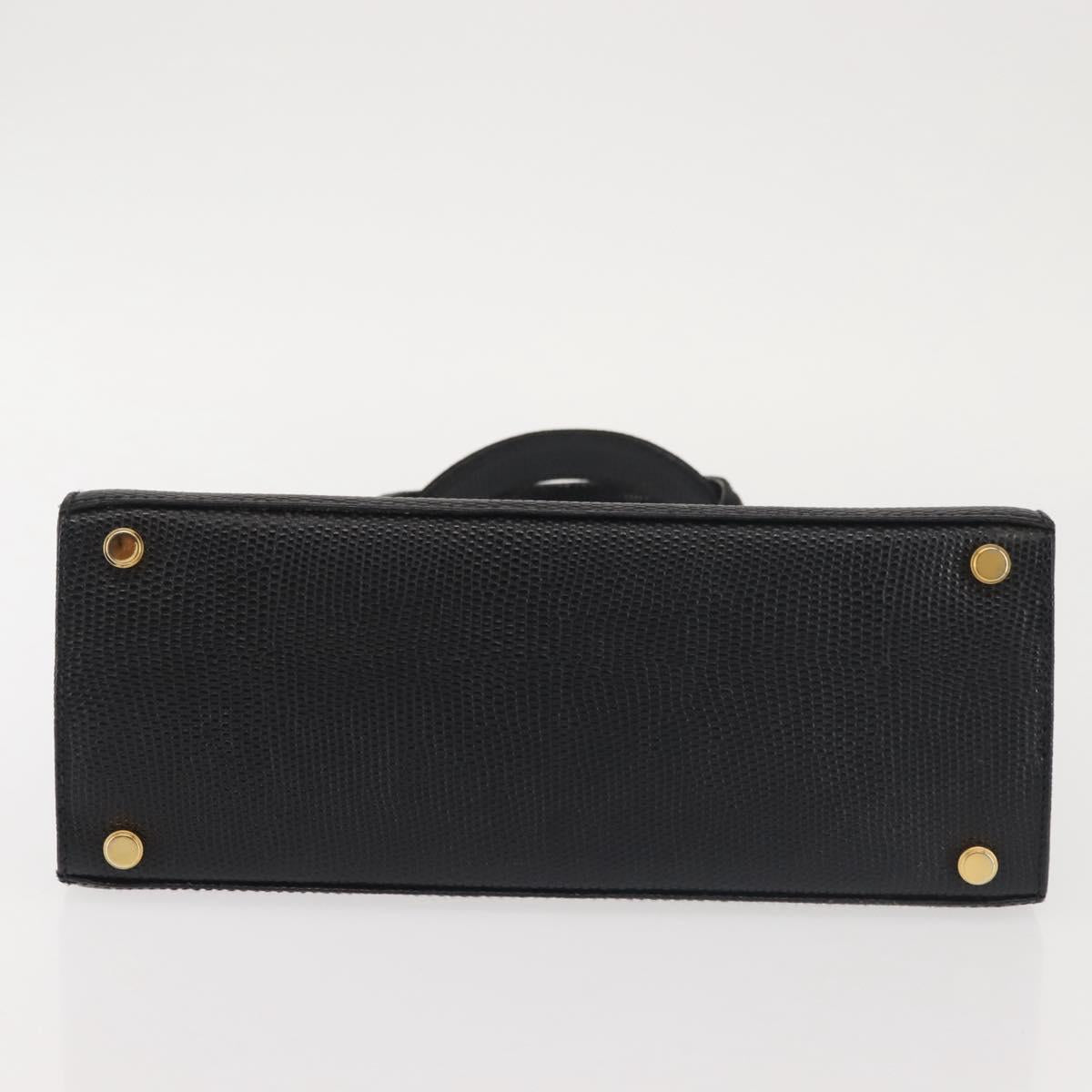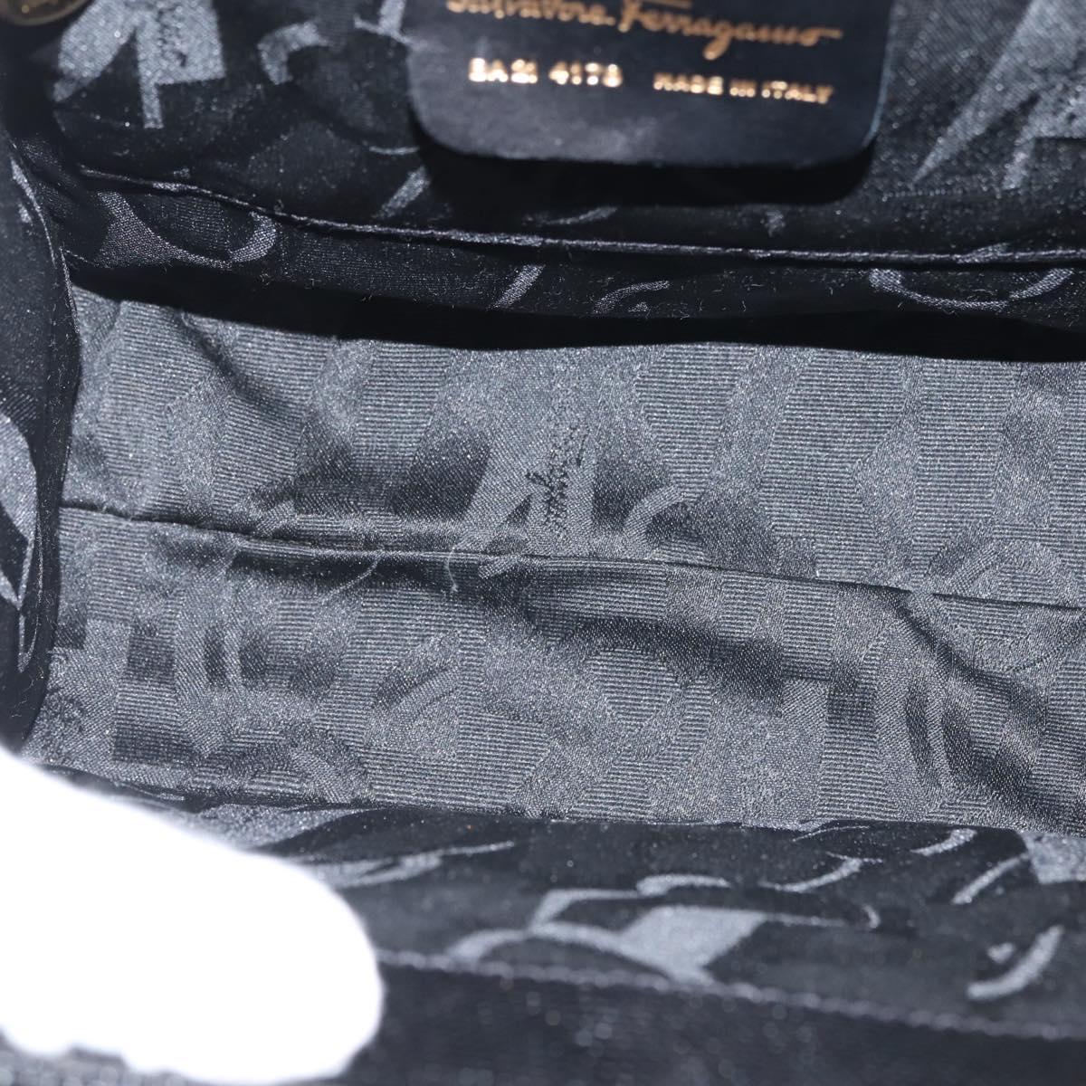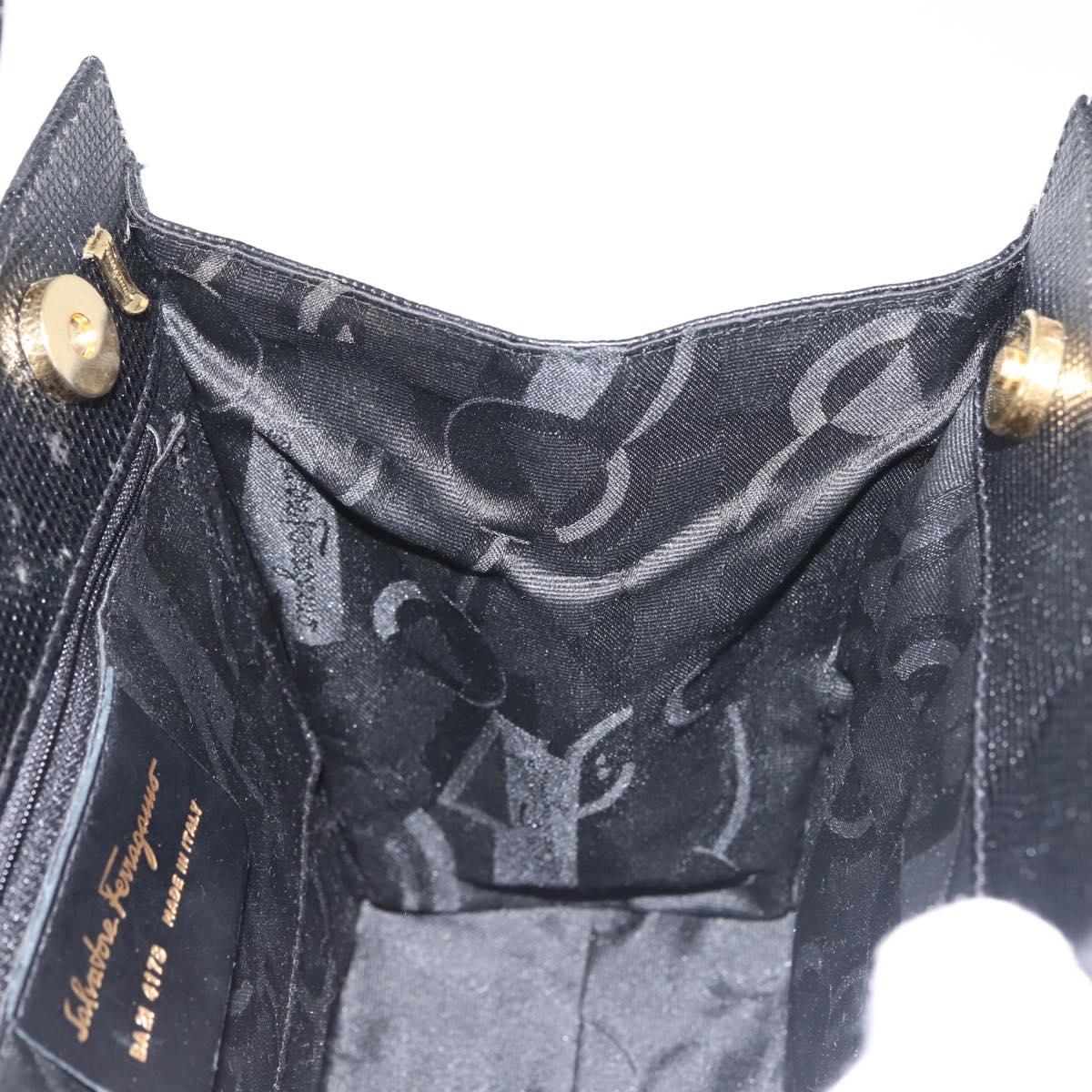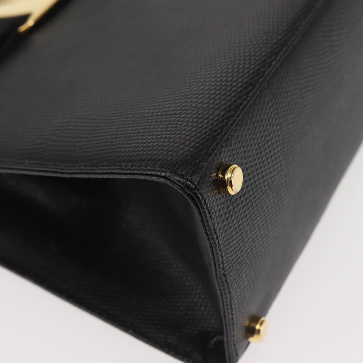 Salvatore Ferragamo Vala Hand Bag Embossed Leather Black Gold - BA5845