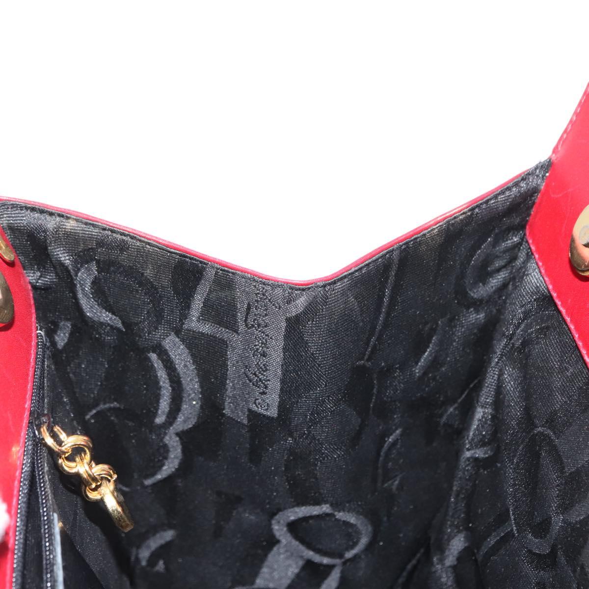 Salvatore Ferragamo Vala Hand Bag Leather 2way Red Gold - BA6584