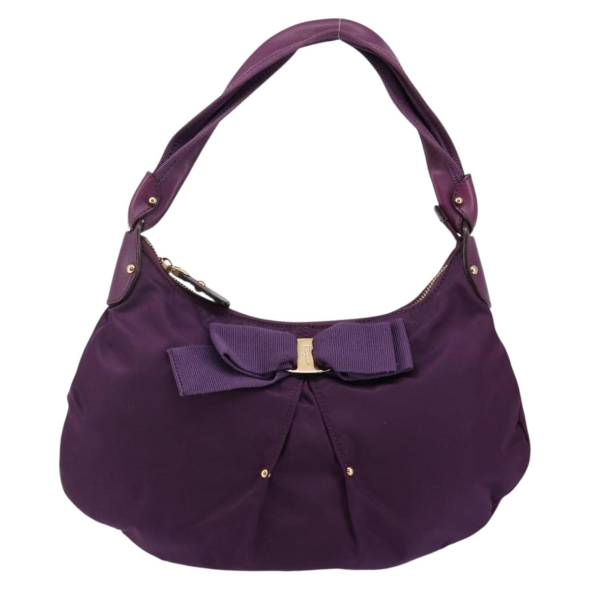 Salvatore Ferragamo Vala Shoulder Bag Nylon Purple Gold - 142887