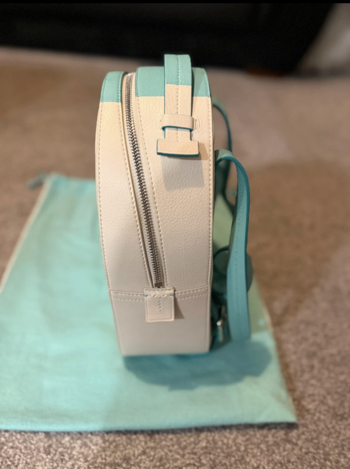 Tiffany&Co Small Backpack Sky blue White Leather