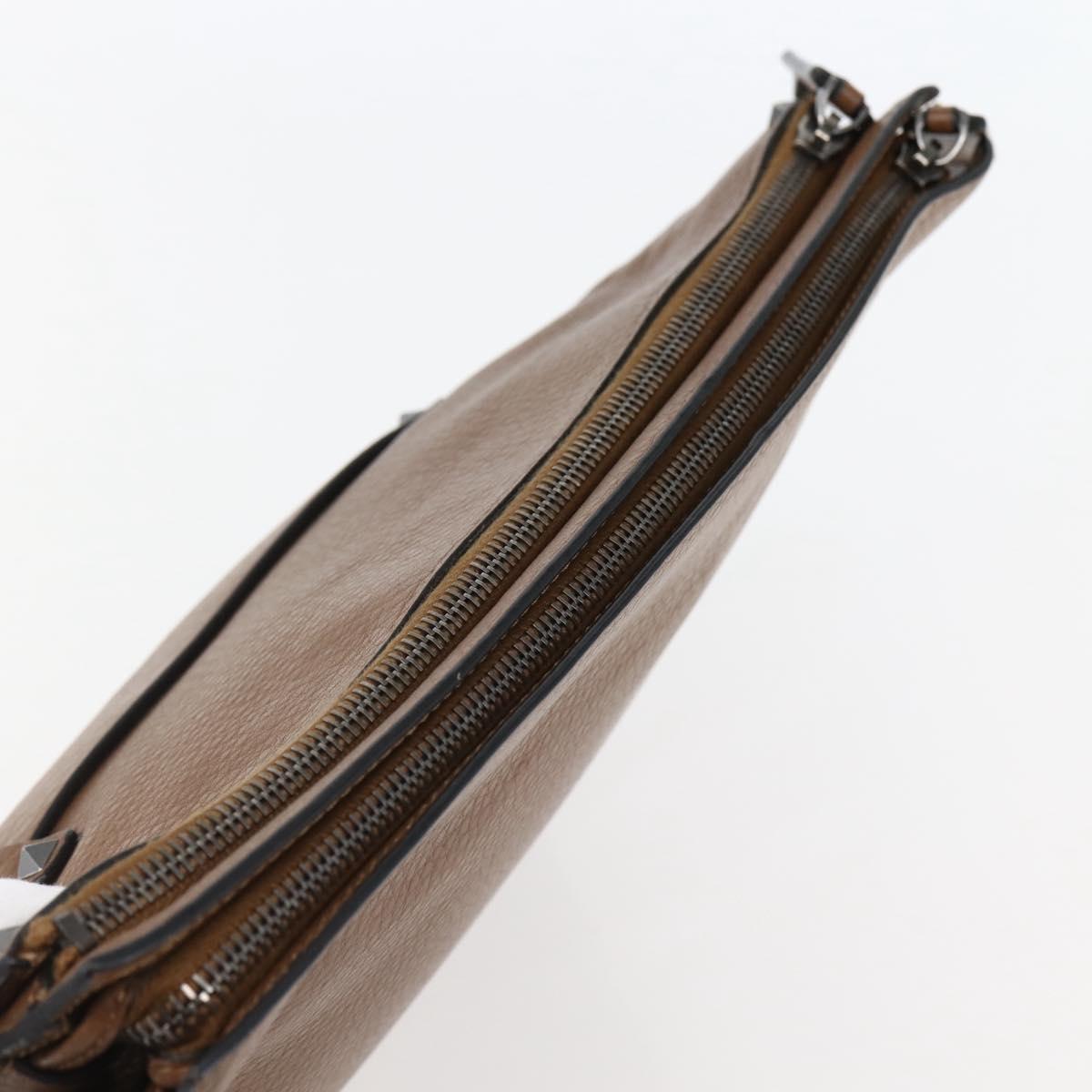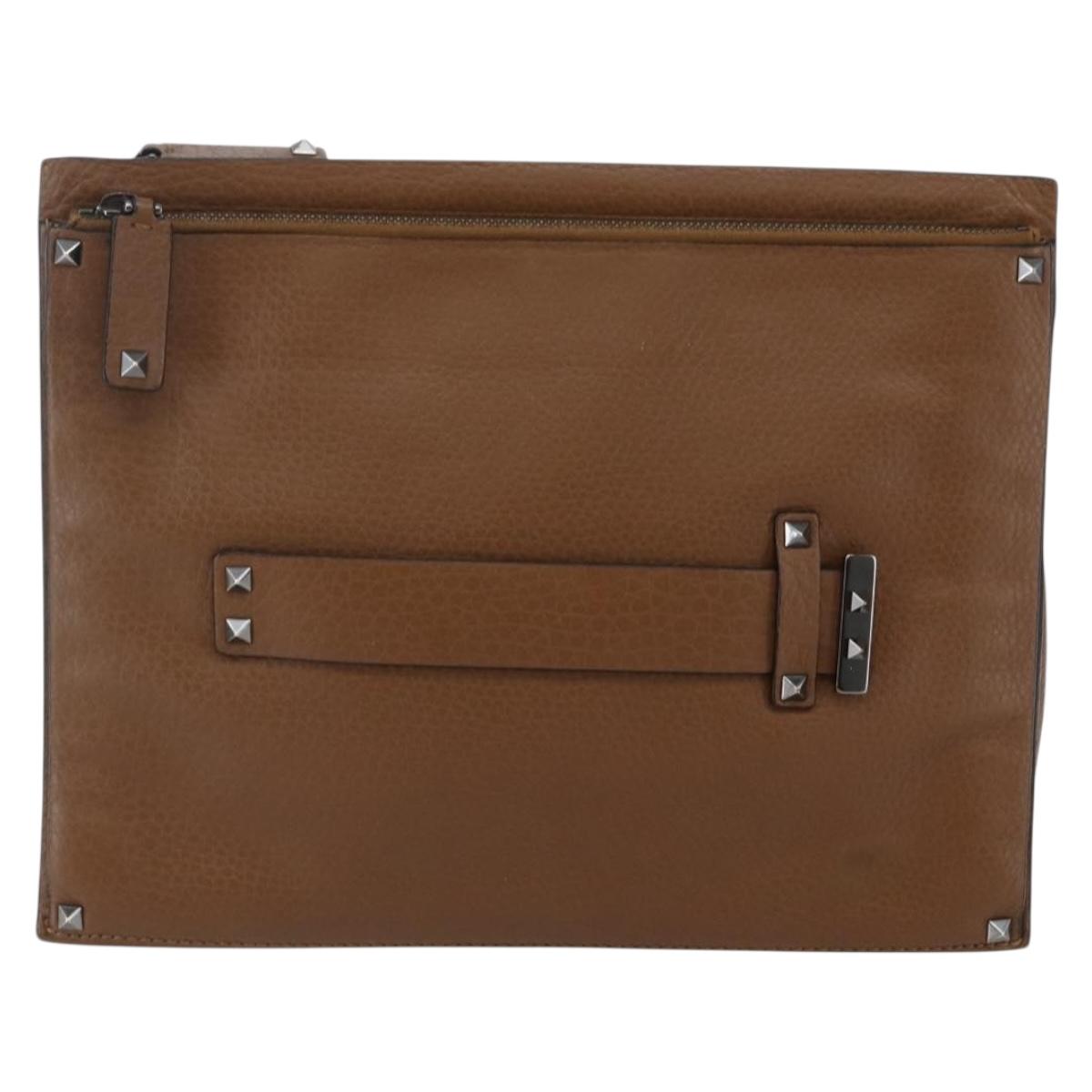 VALENTINO Clutch Bag Leather Brown Silver - bs29681