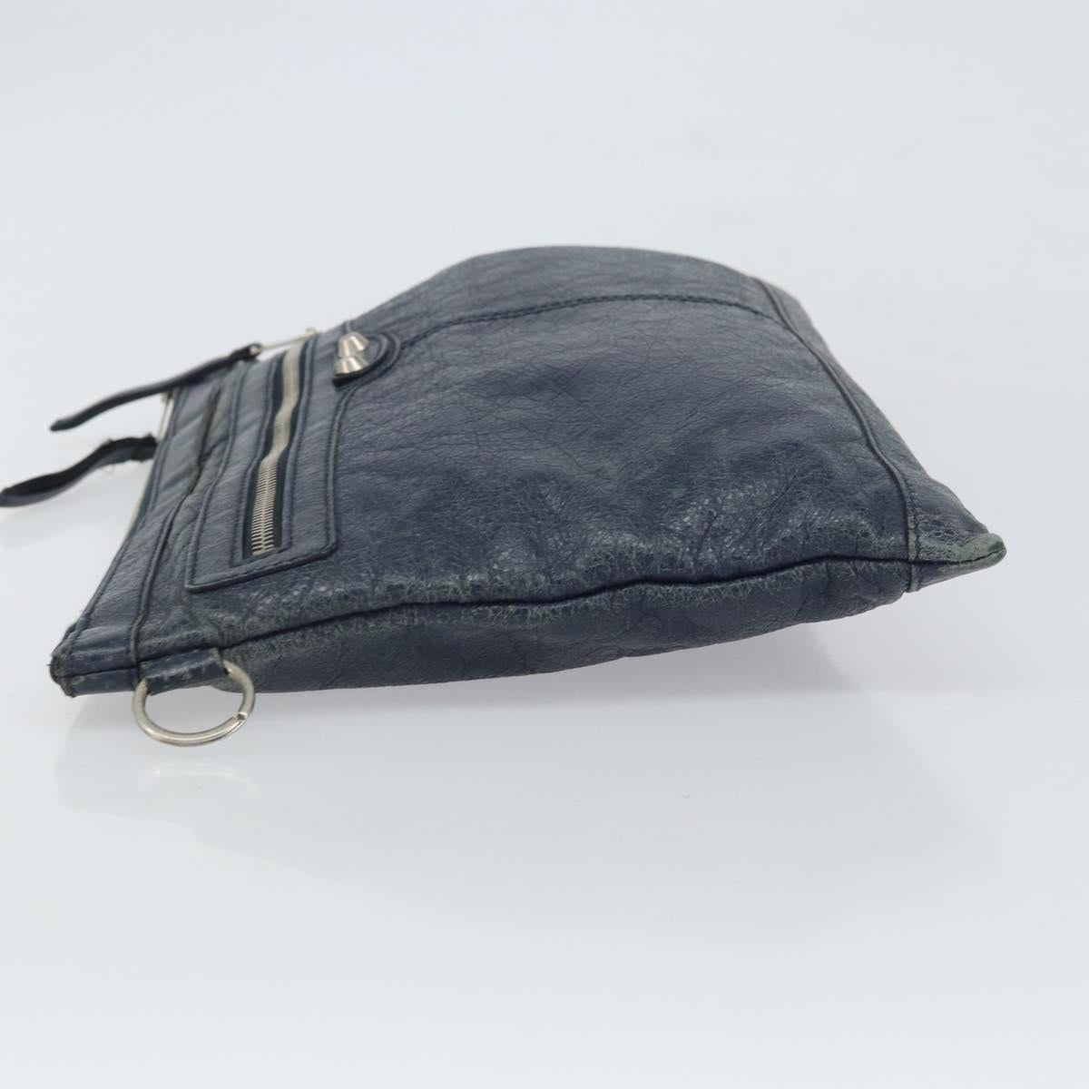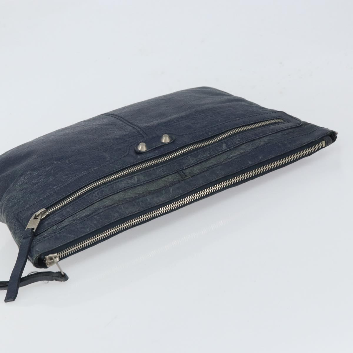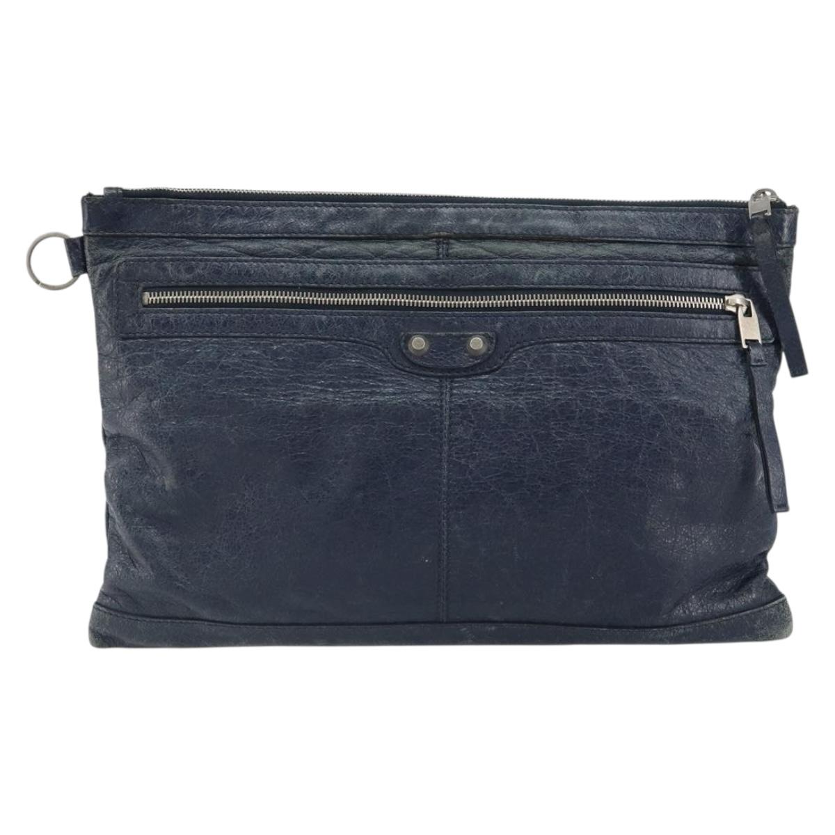 BALENCIAGA Classic Clip L Clutch Bag Leather Navy Silver 273023 - bs32576