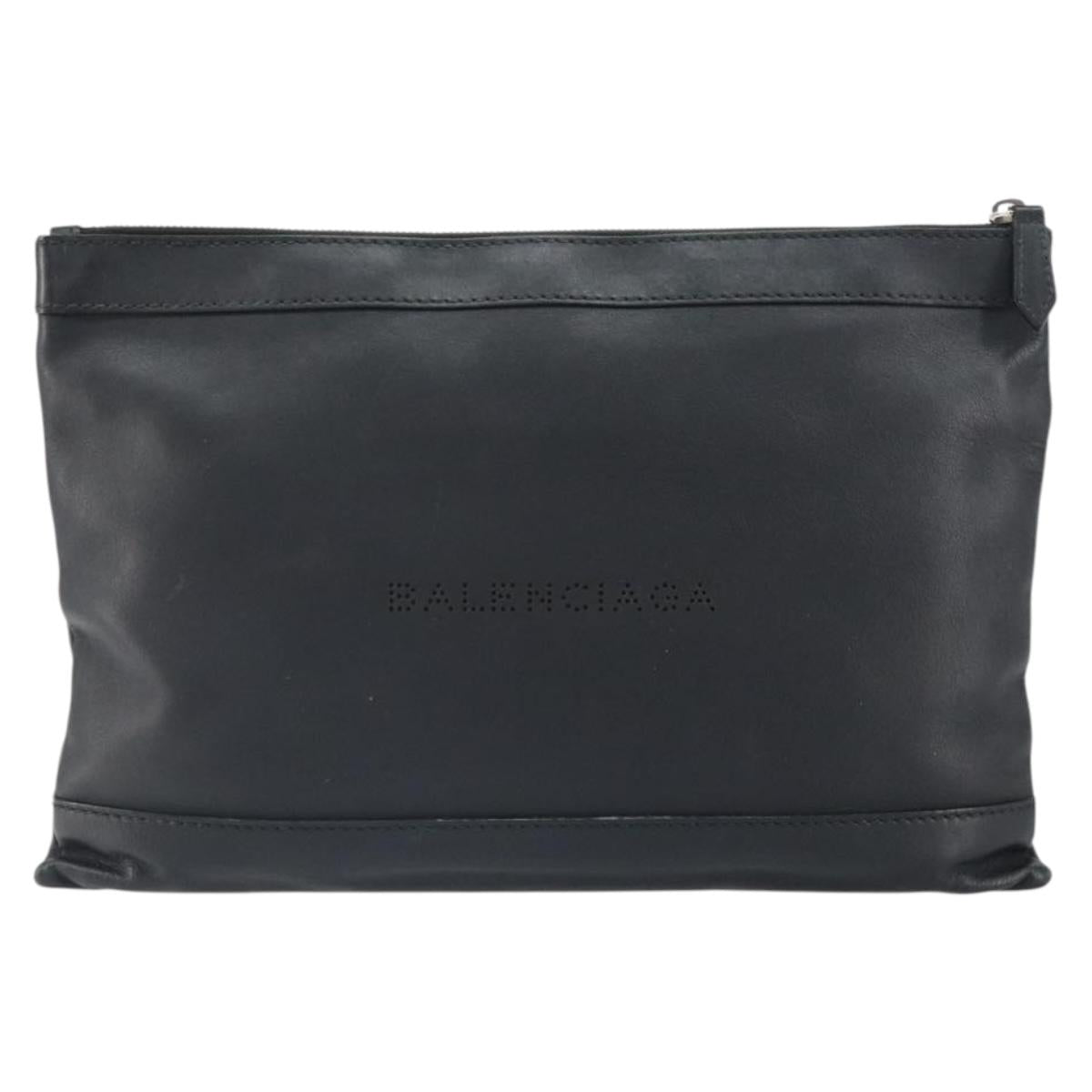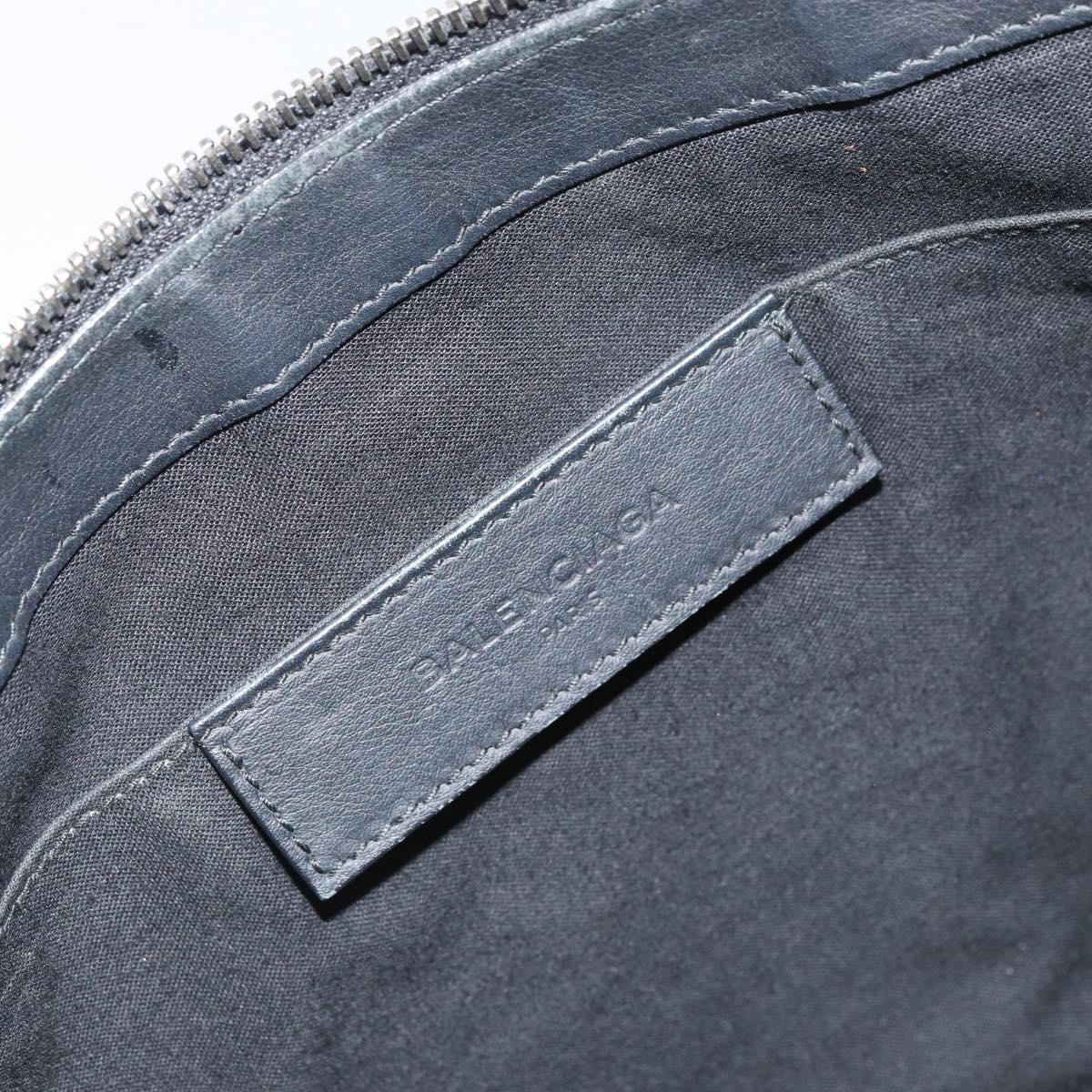 BALENCIAGA Clutch Bag Leather Black Silver 373834 - 163272