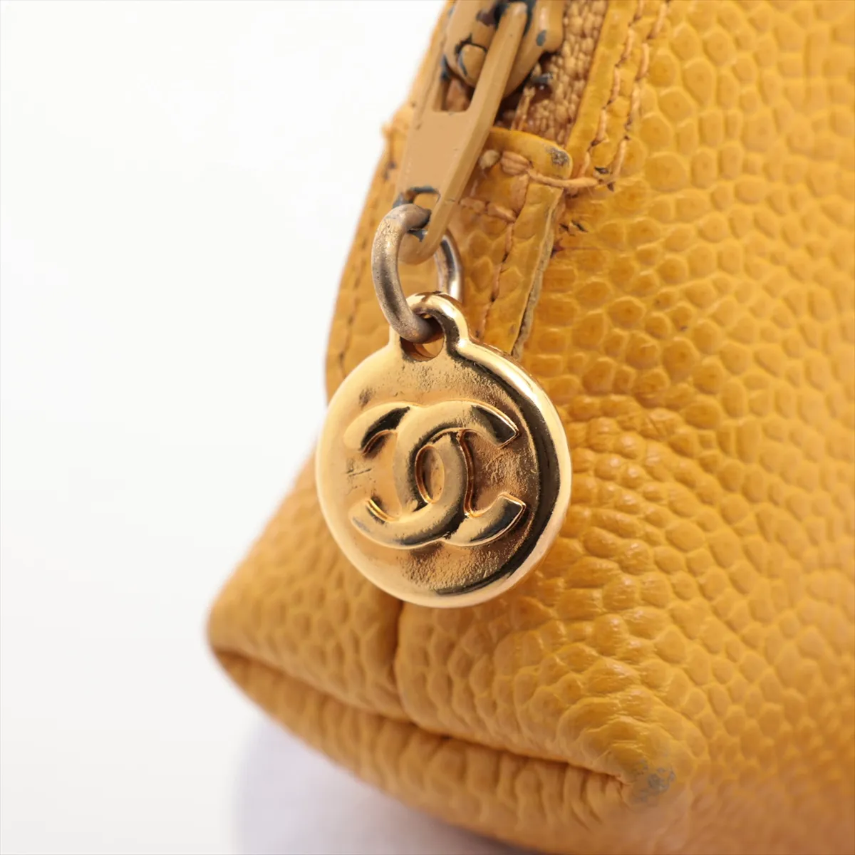 Chanel Coco Mark Caviar Skin Pouch Yellow Gold Metal Fittings