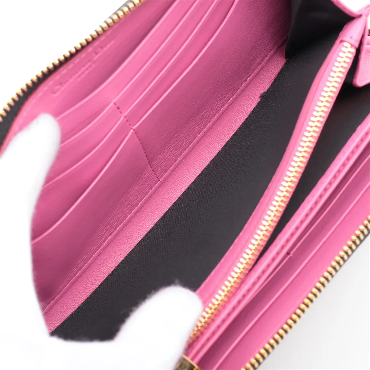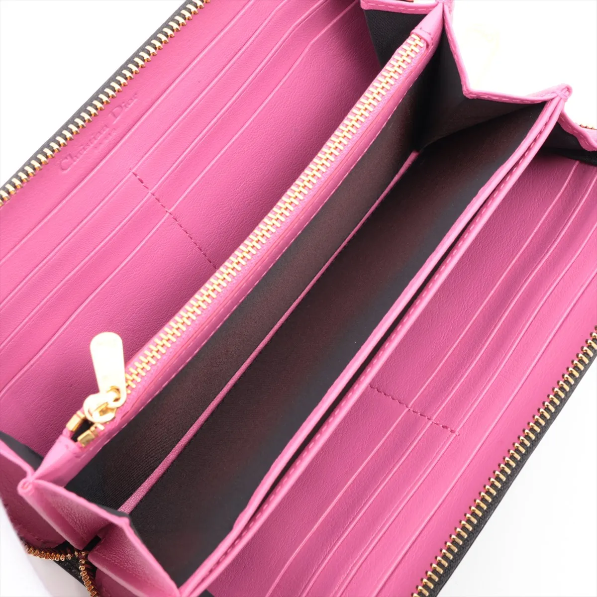 Dior Jacquard Leather Zip Round Wallet Black
