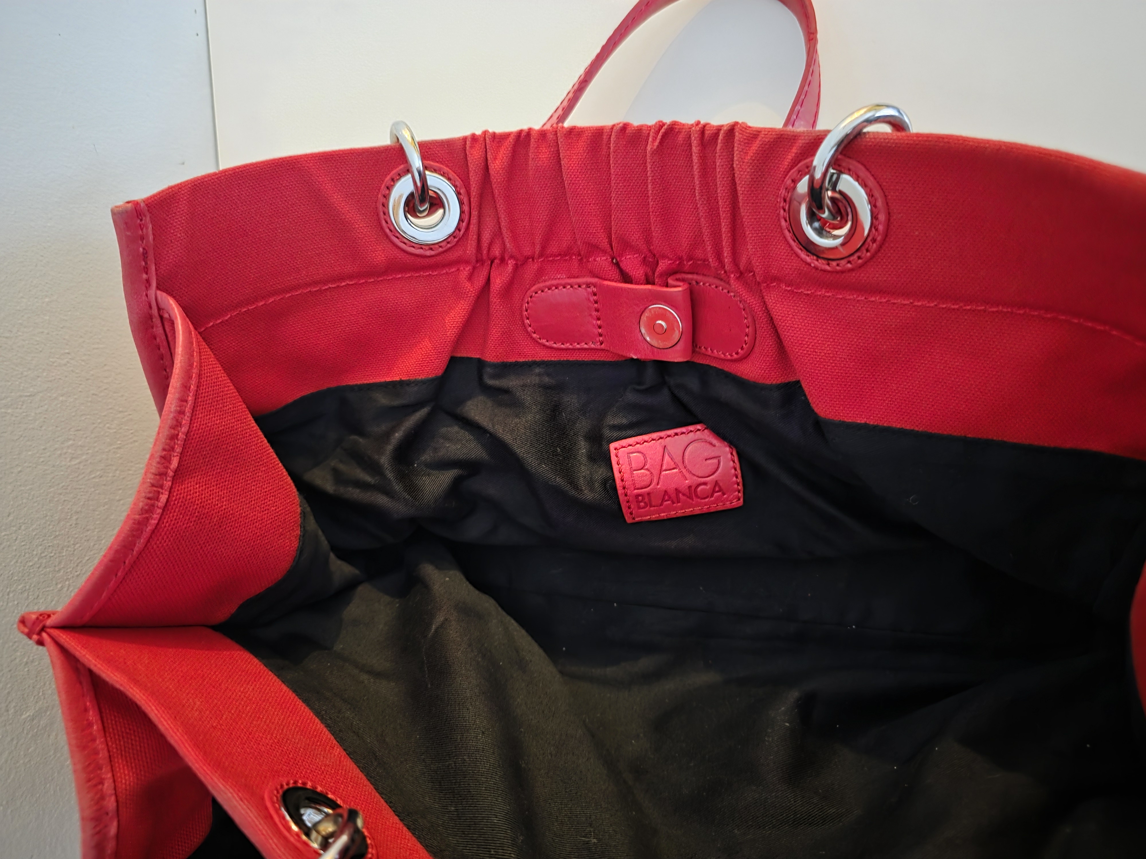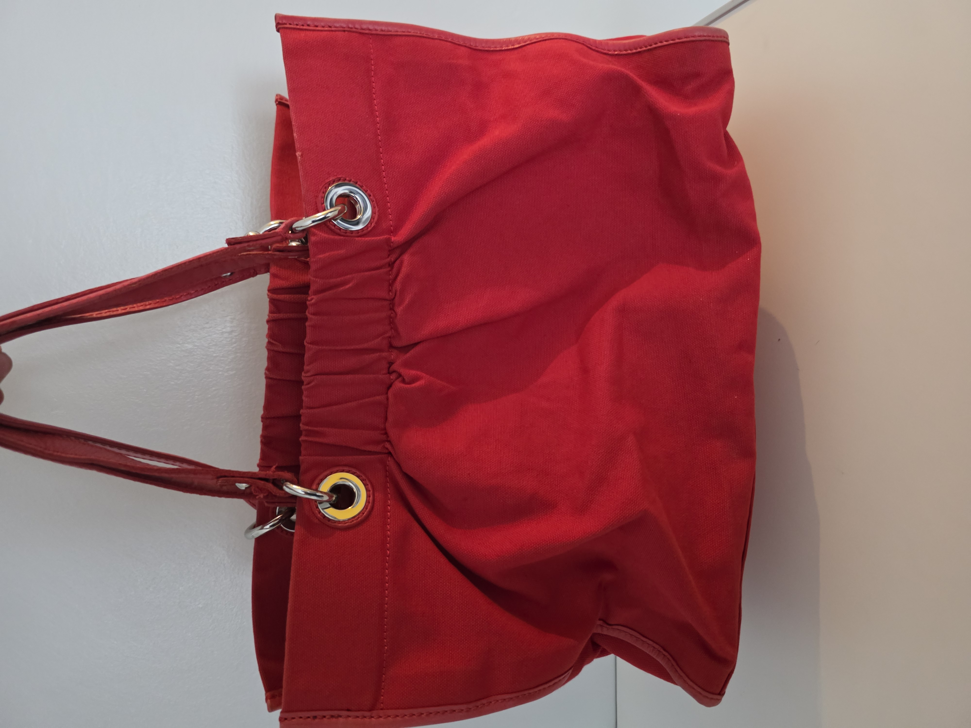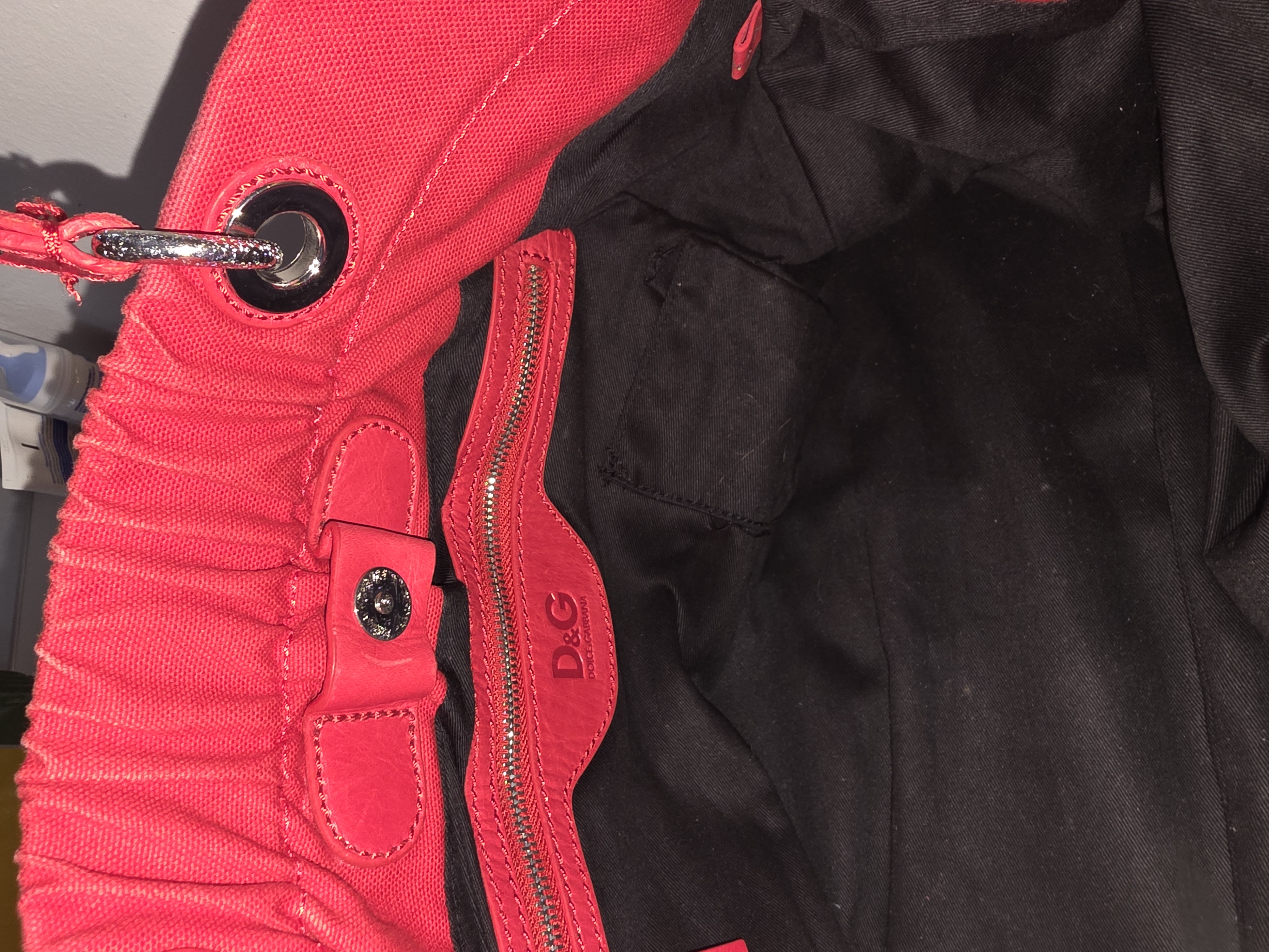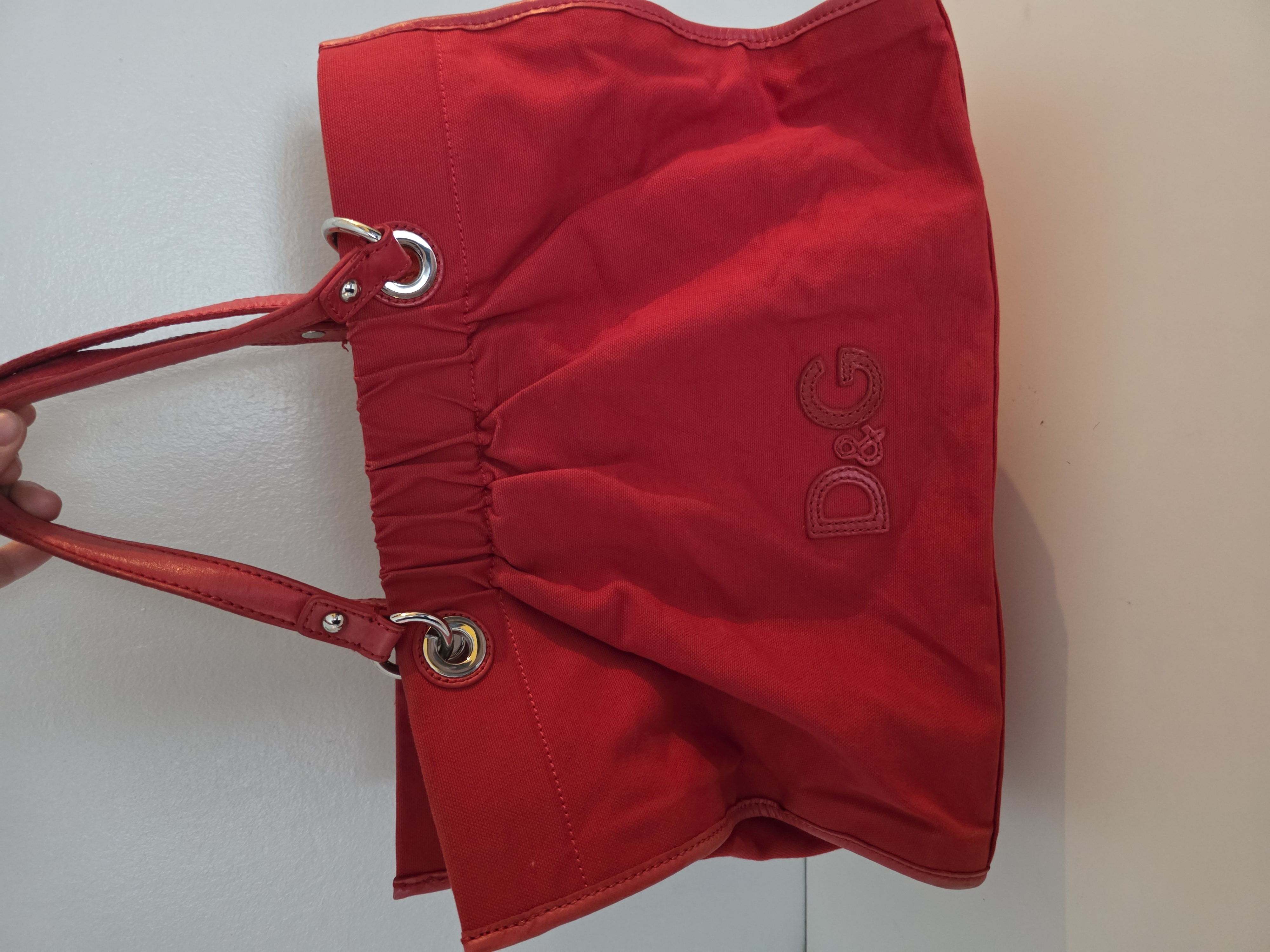 Dolce & Gabbana D&G Red Canvas Tote Bag Leather Handles Large Handbag