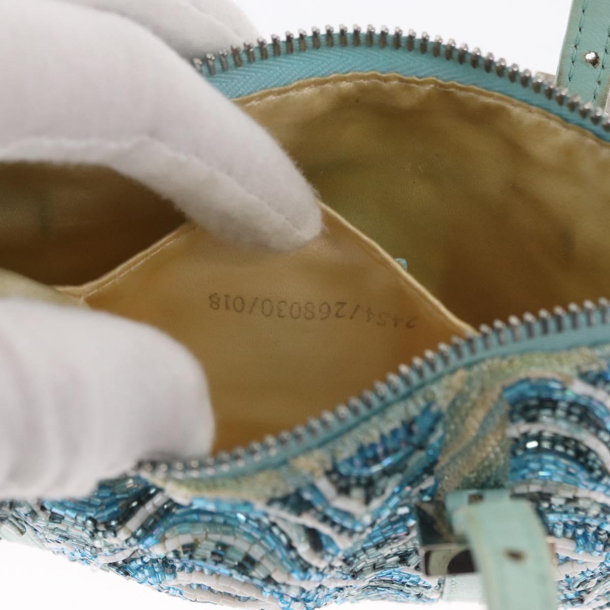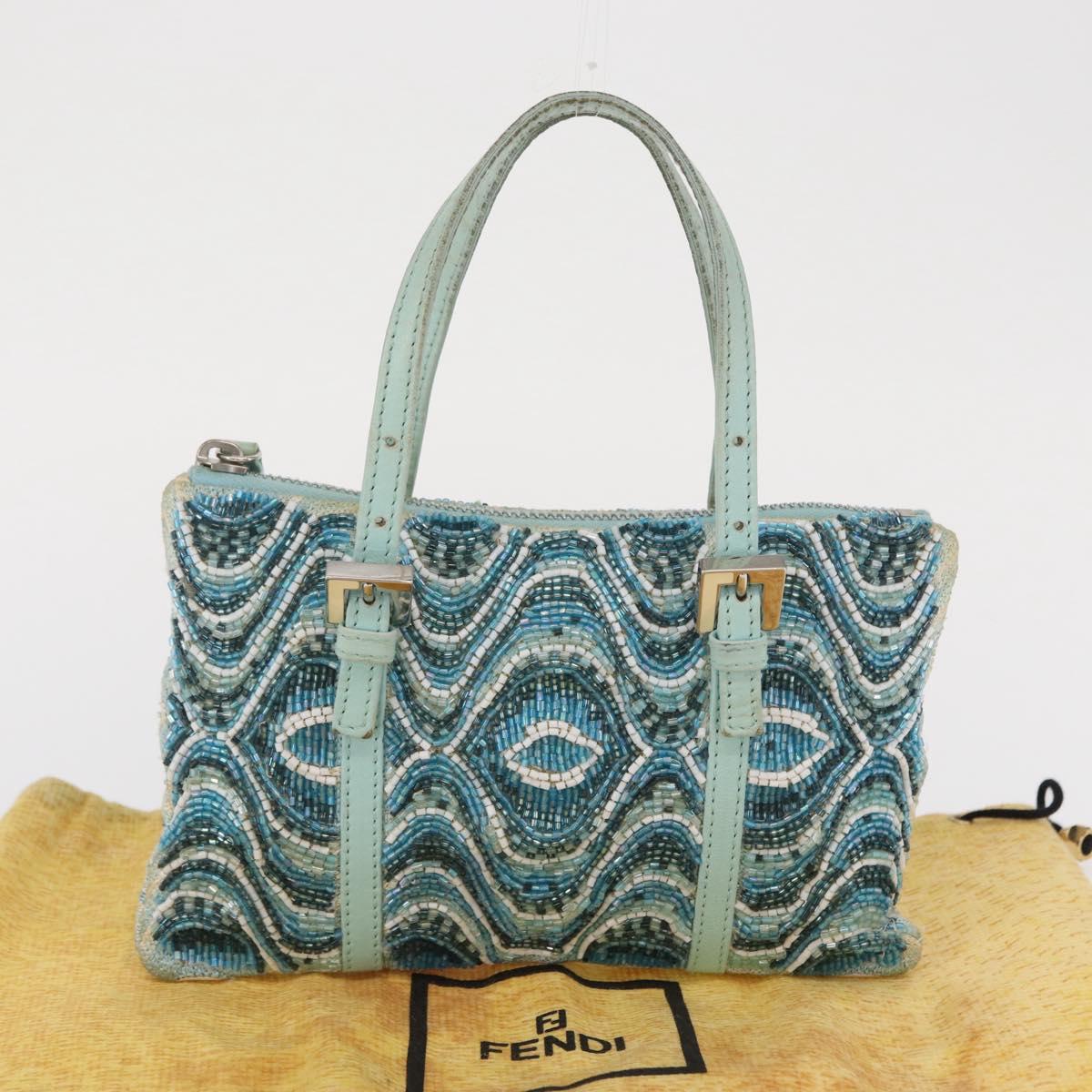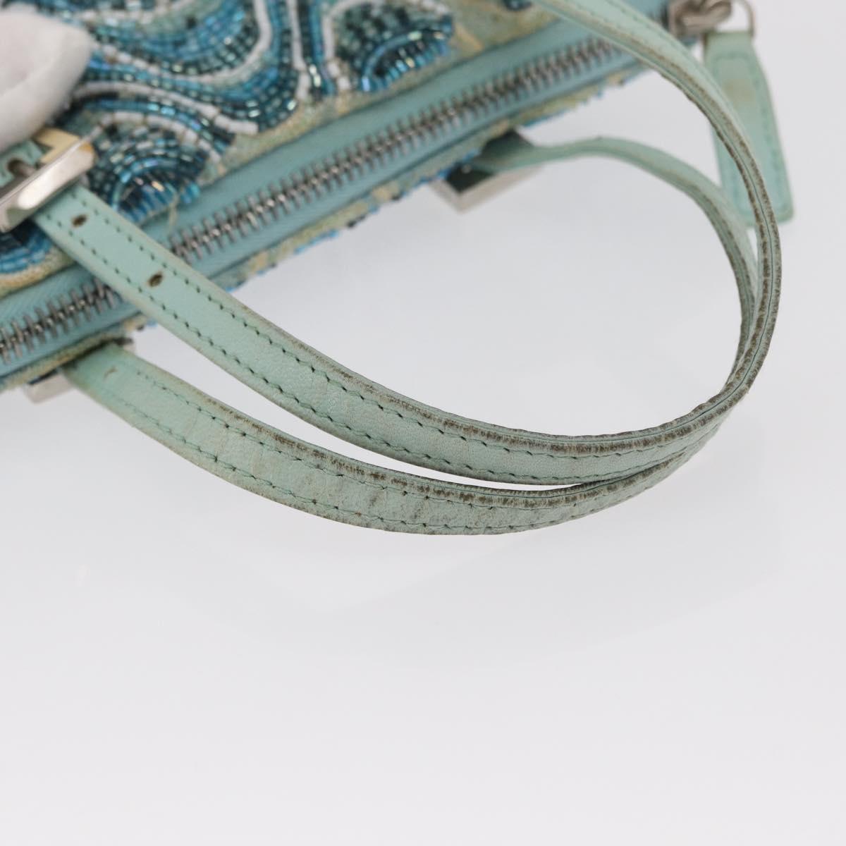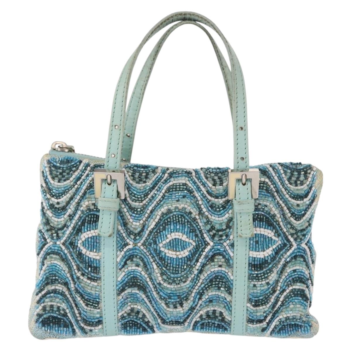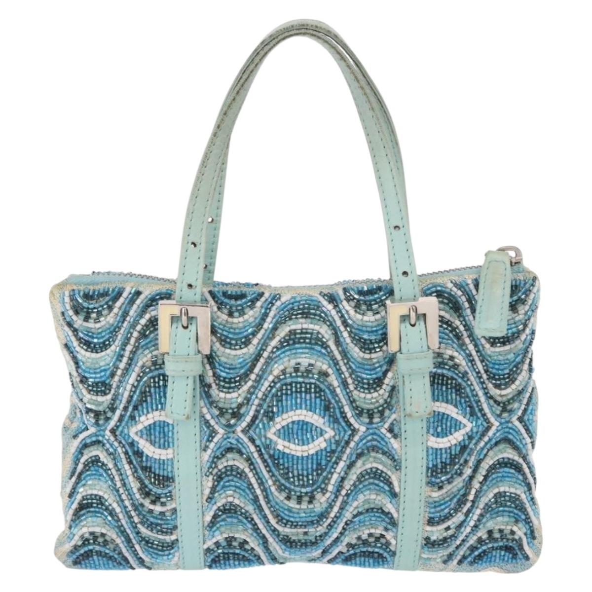 FENDI Beads Hand Bag Canvas Blue Silver - 165940SAV