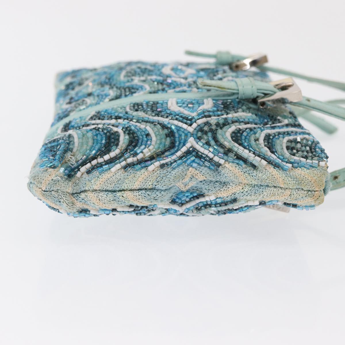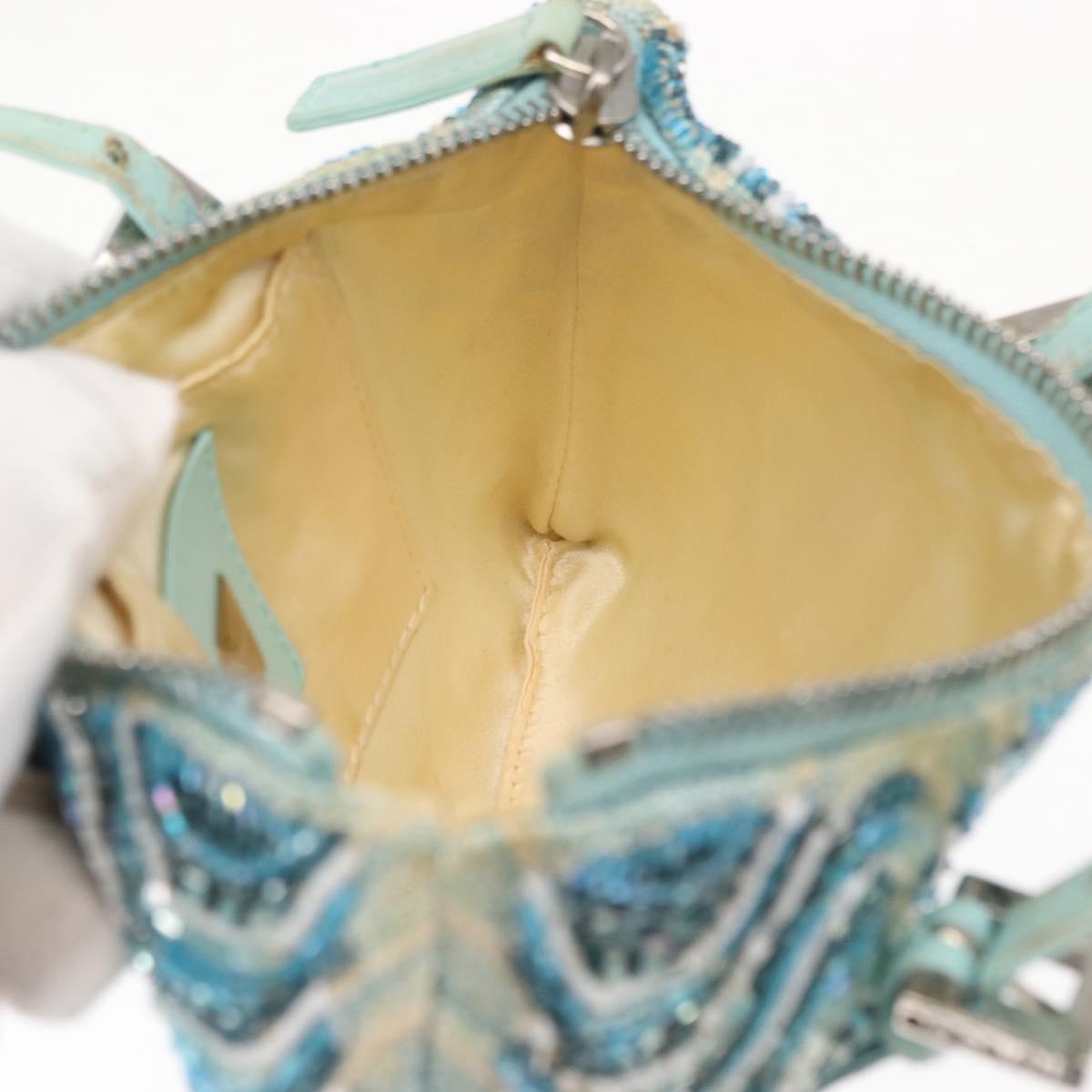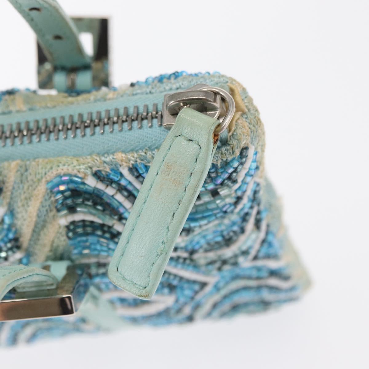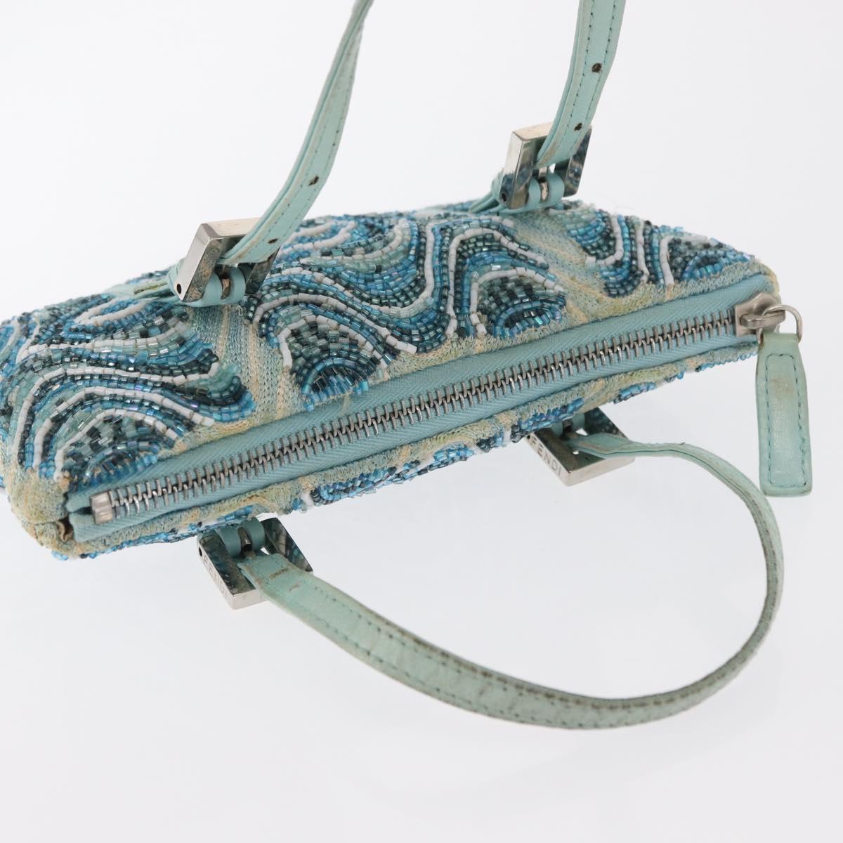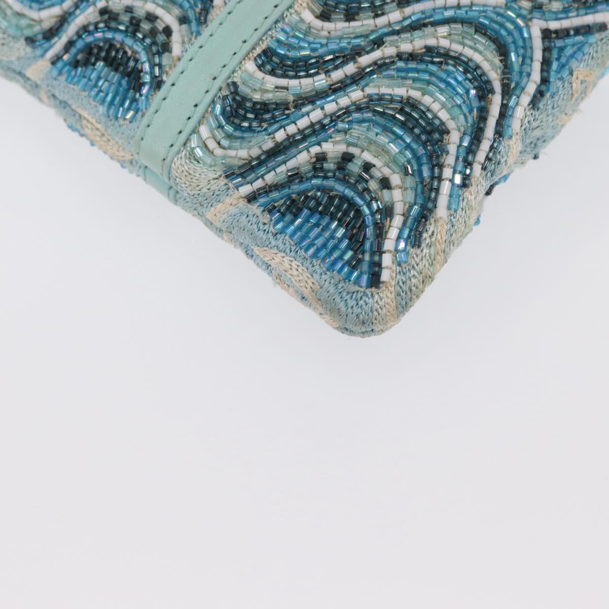 FENDI Beads Hand Bag Canvas Blue Silver - 165940SAV