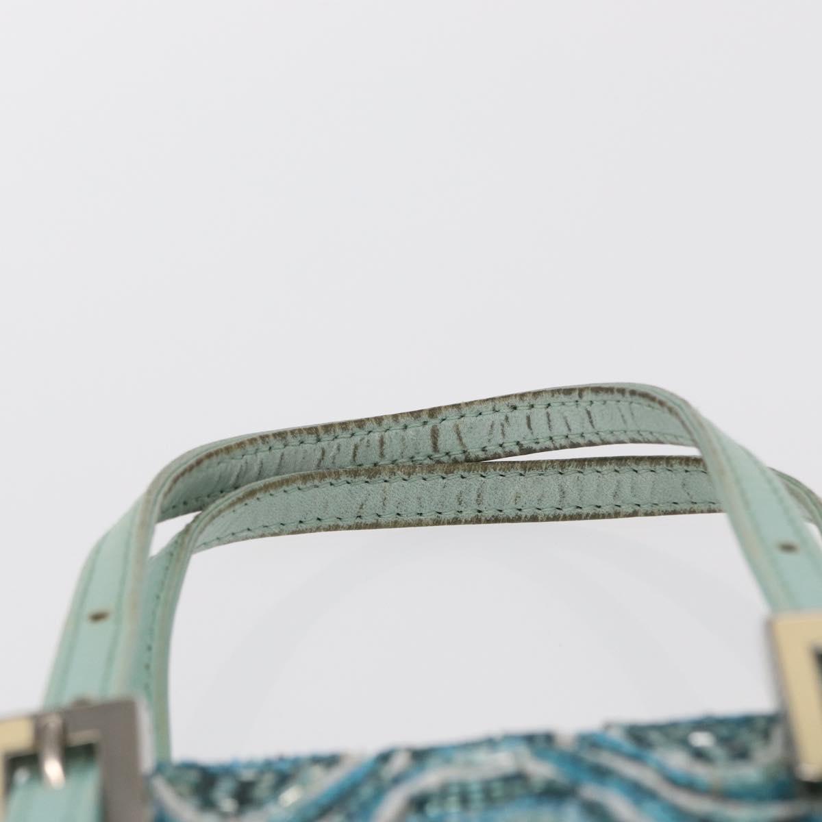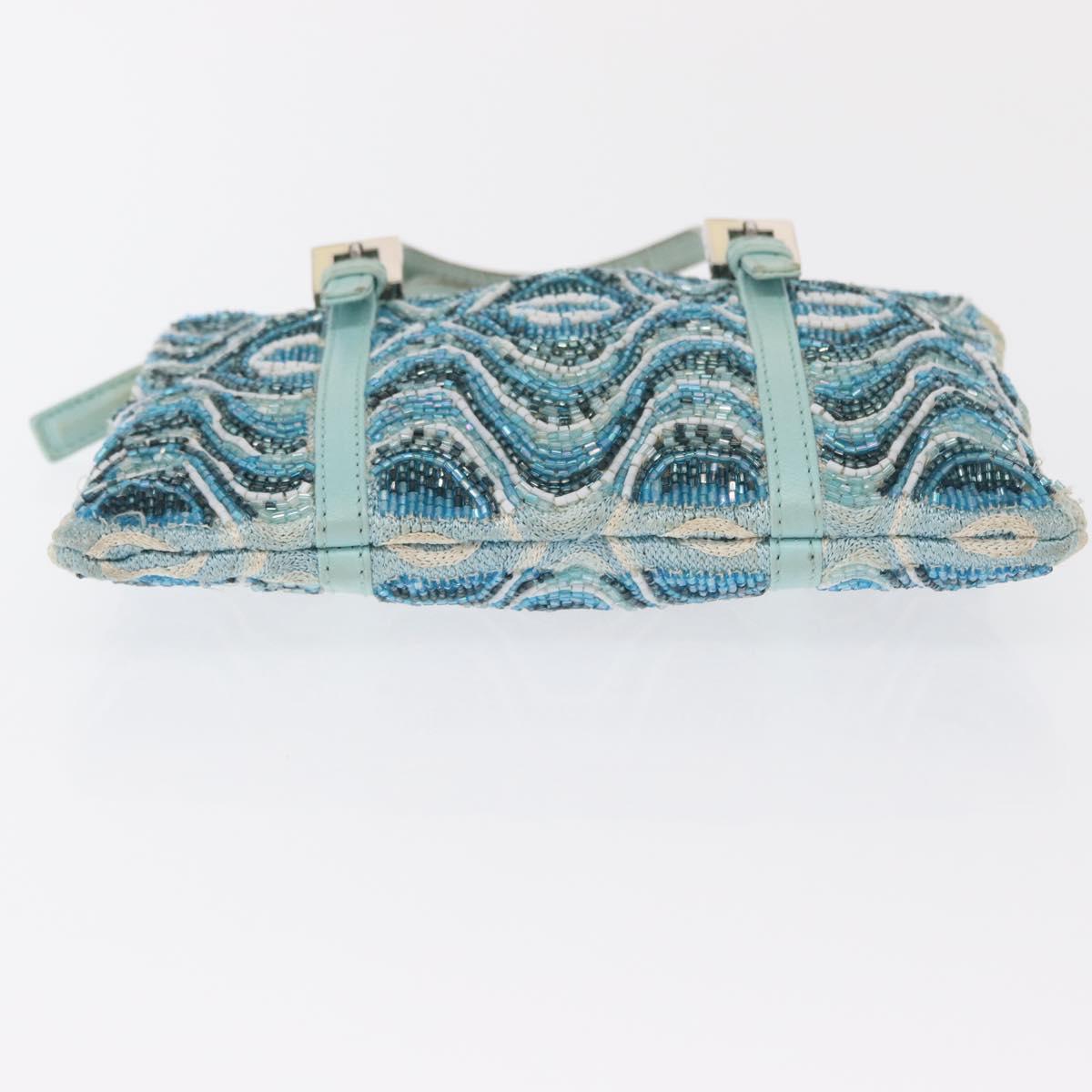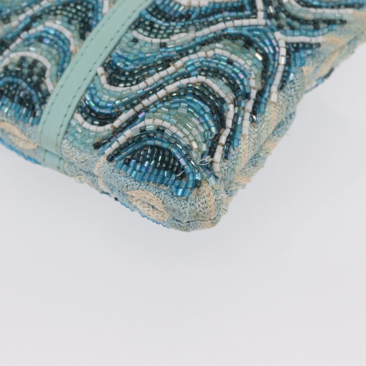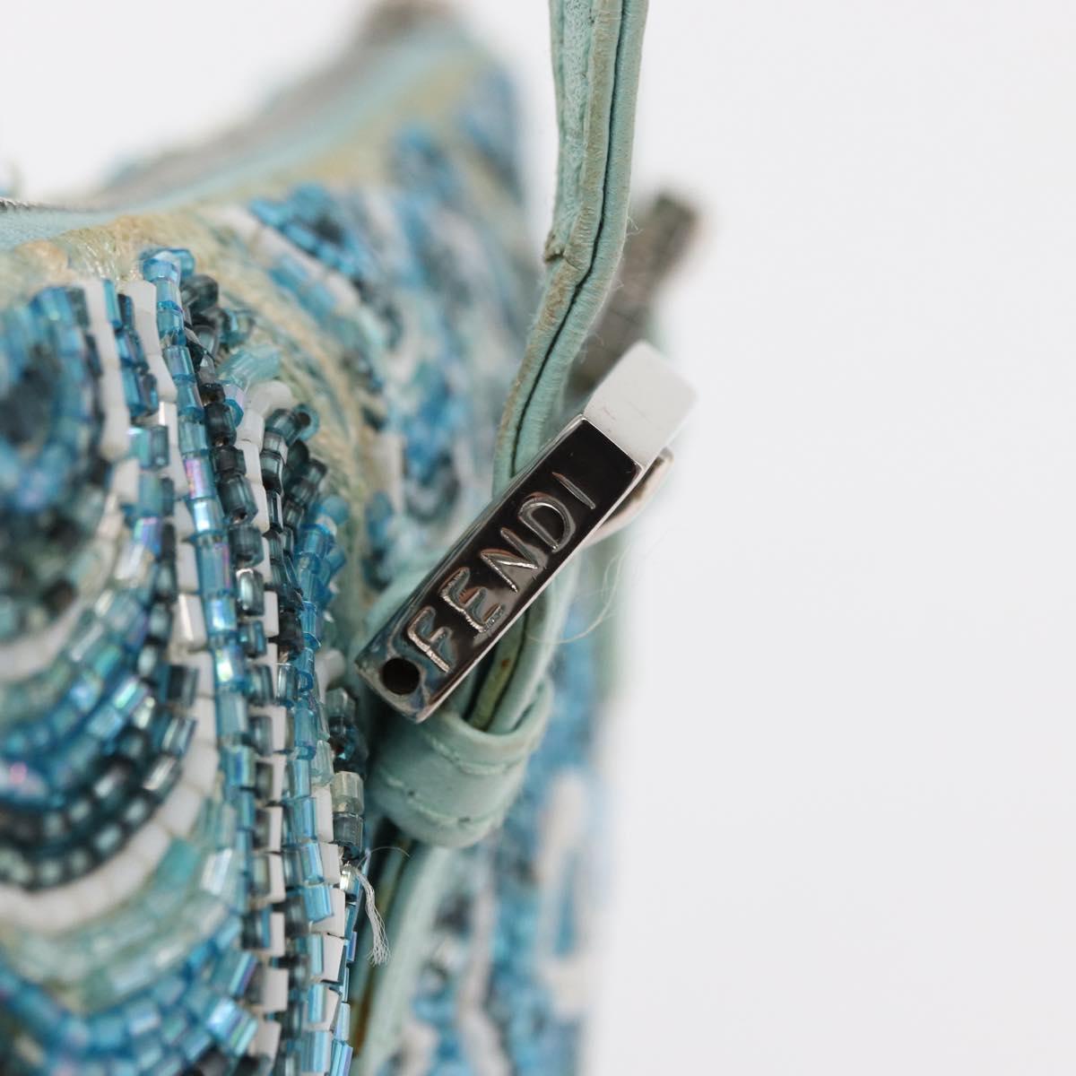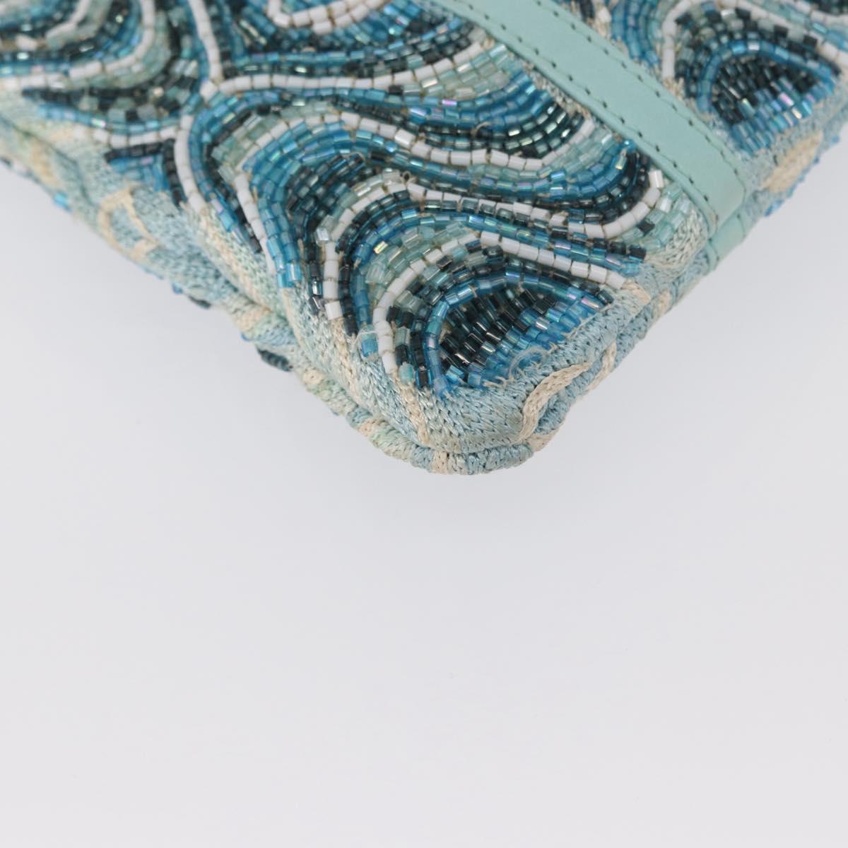 FENDI Beads Hand Bag Canvas Blue Silver - 165940SAV