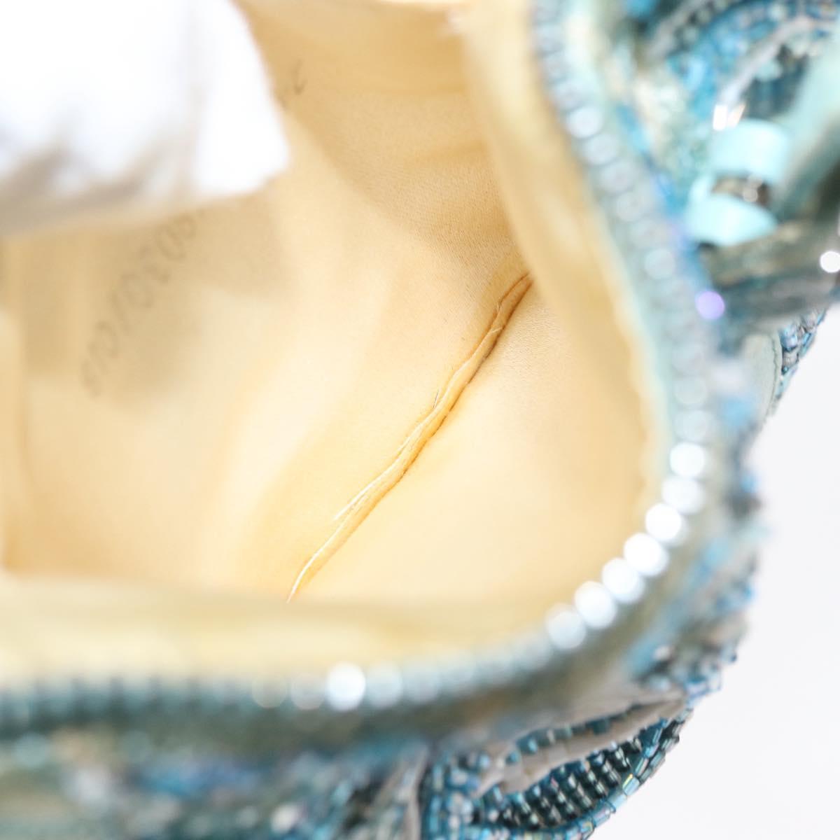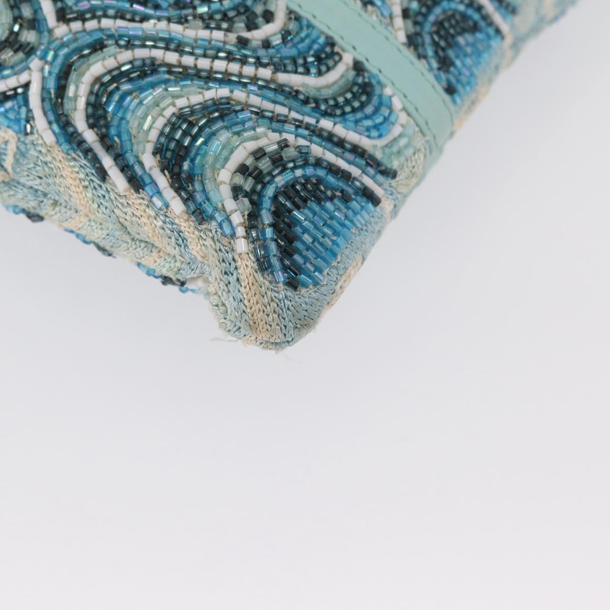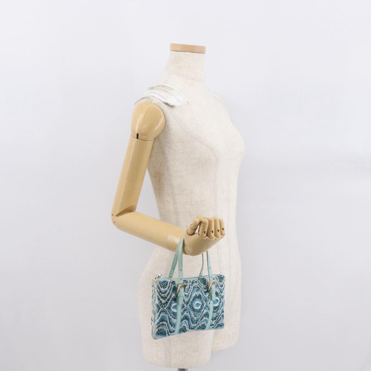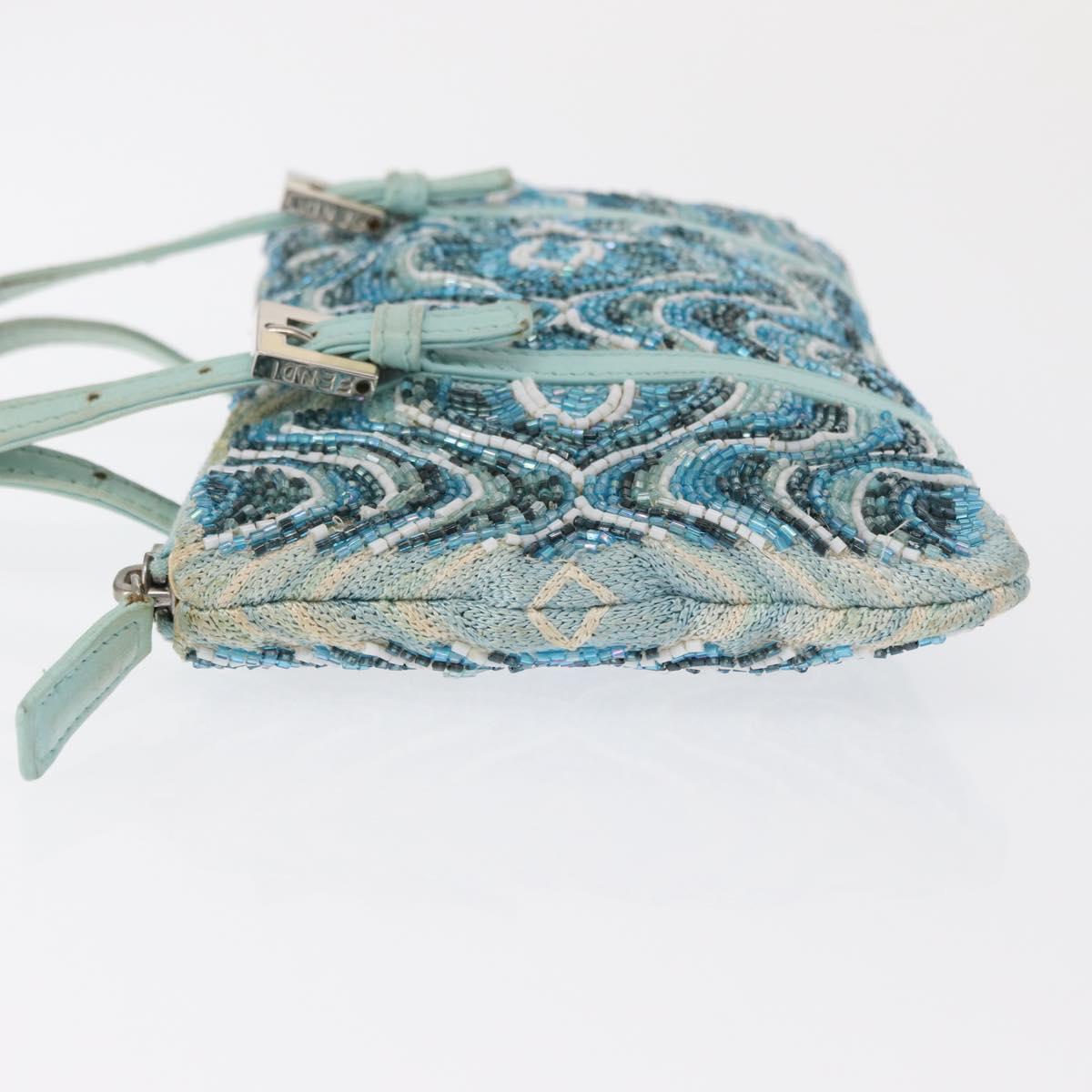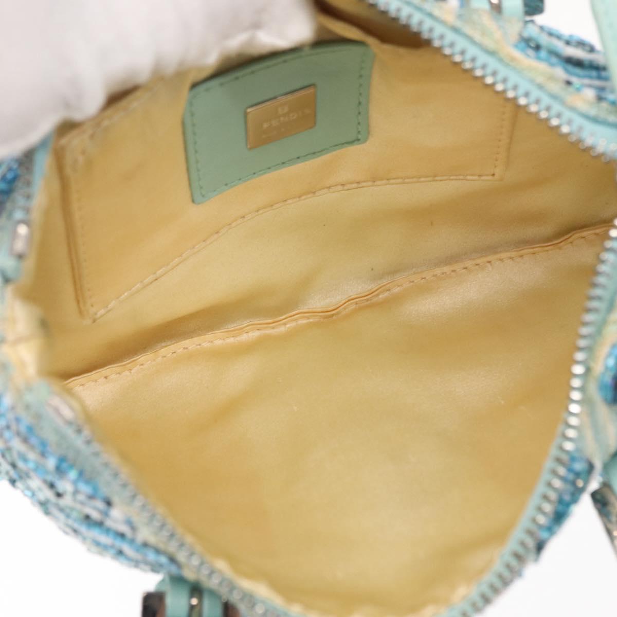 FENDI Beads Hand Bag Canvas Blue Silver - 165940SAV