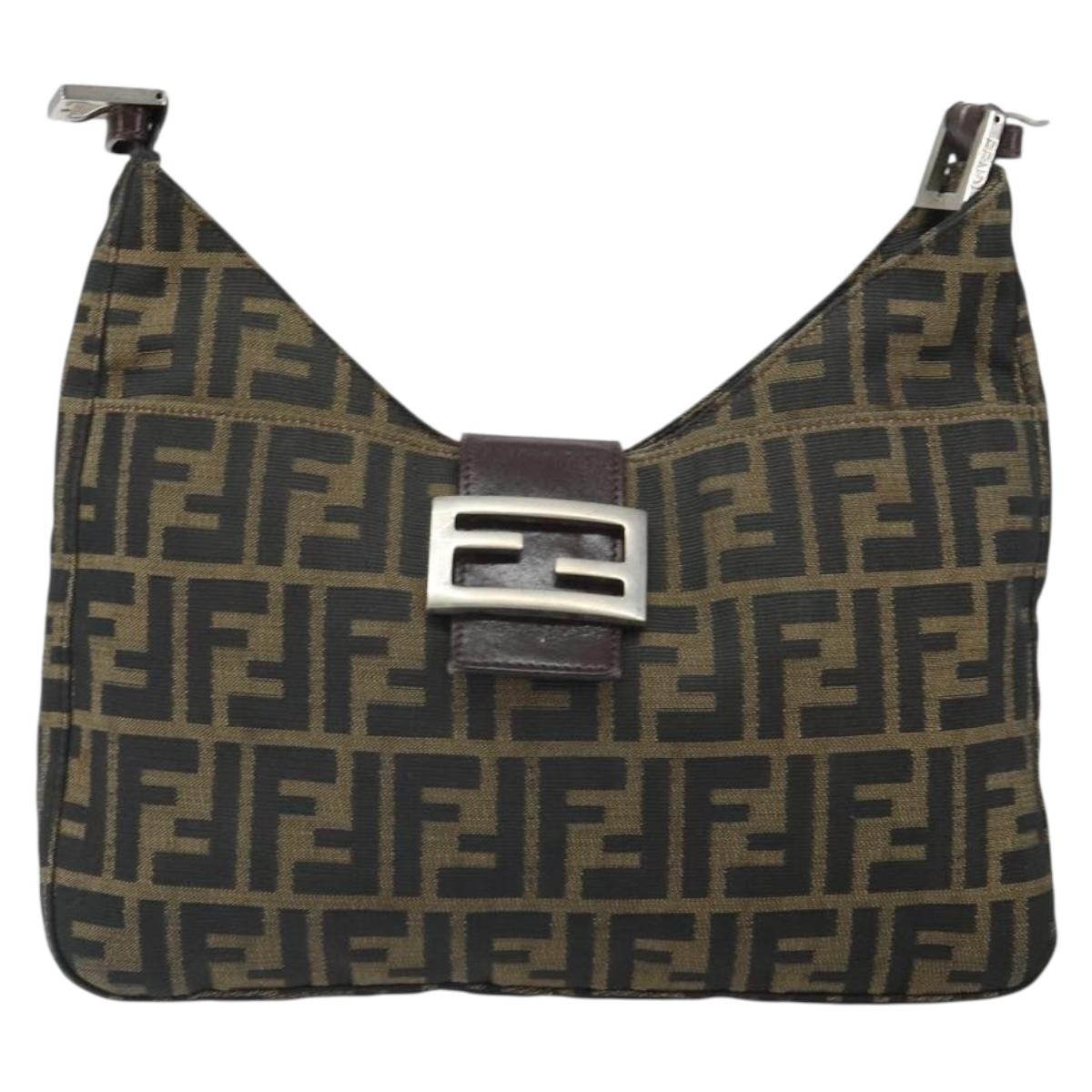 FENDI Zucca Canvas Mamma Baguette Shoulder Bag Black Brown - 162572