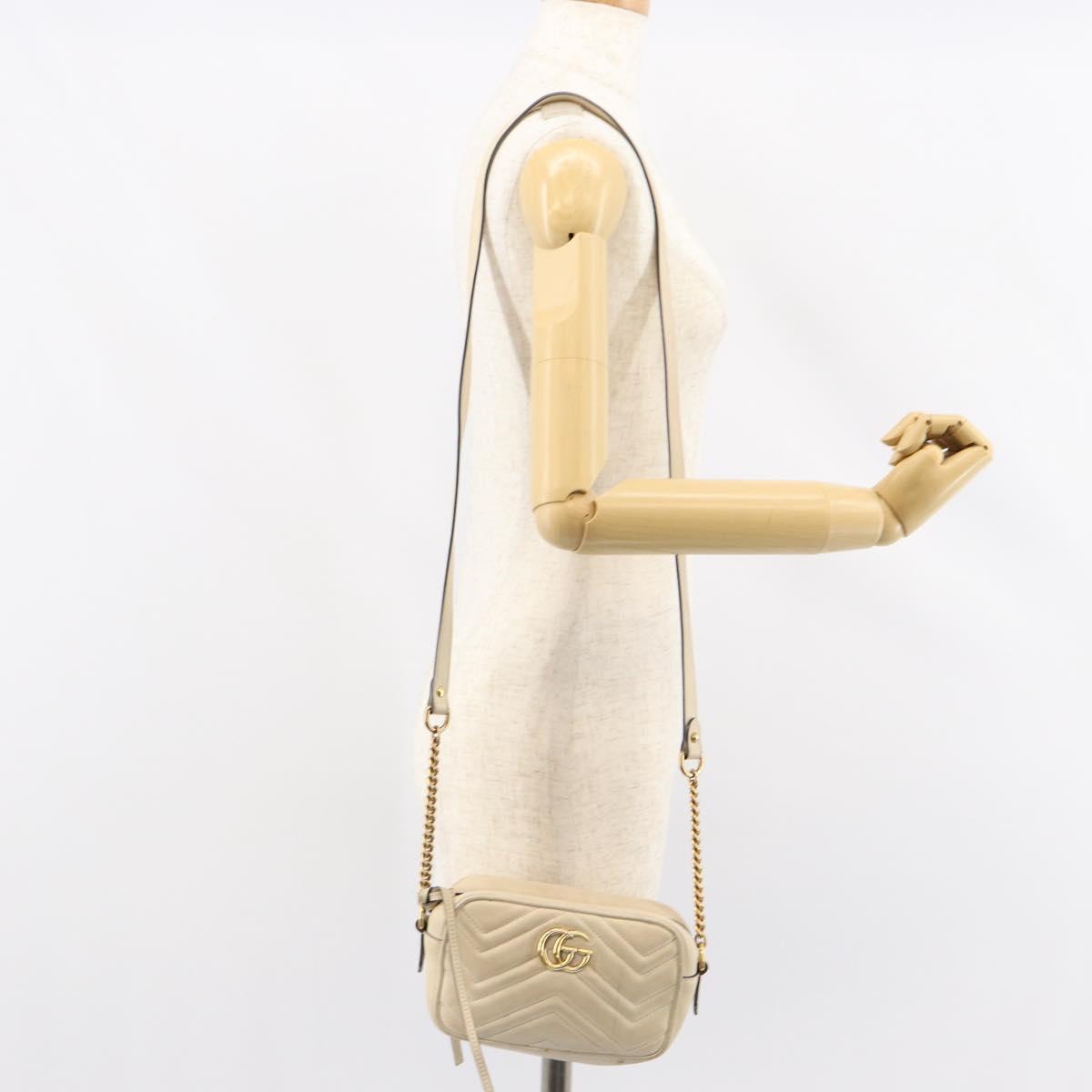 GUCCI GG Marmont Mini Camera Bag Leather White Gold 448065 - gh1235
