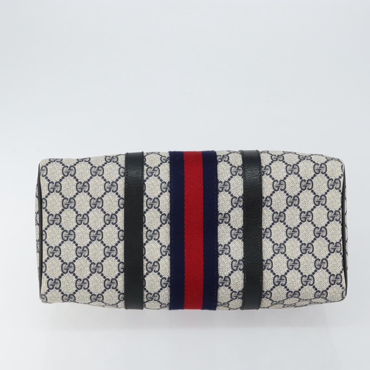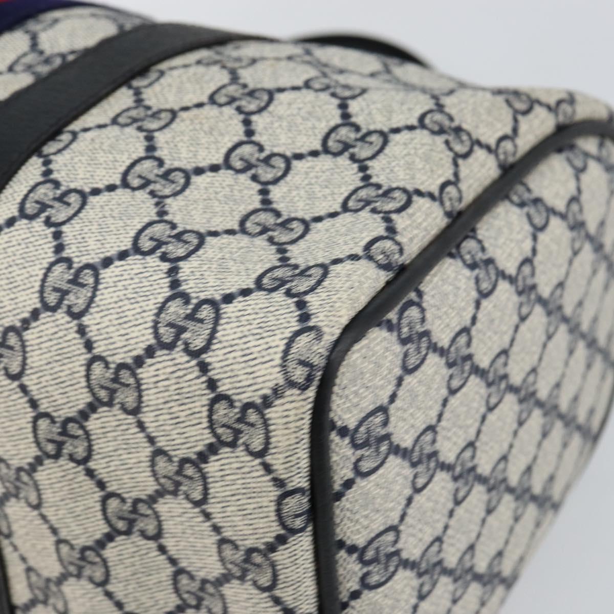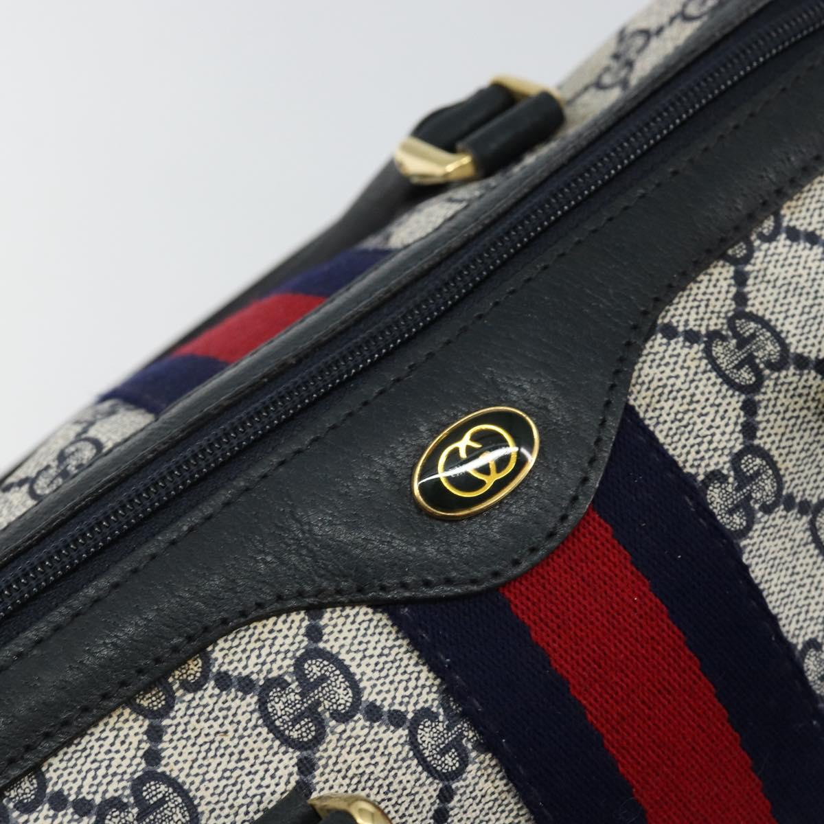 GUCCI GG Supreme Sherry Line Boston Bag PVC Navy Gold Red - 143577