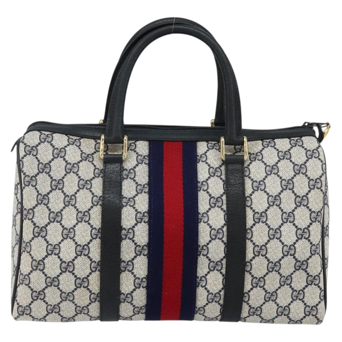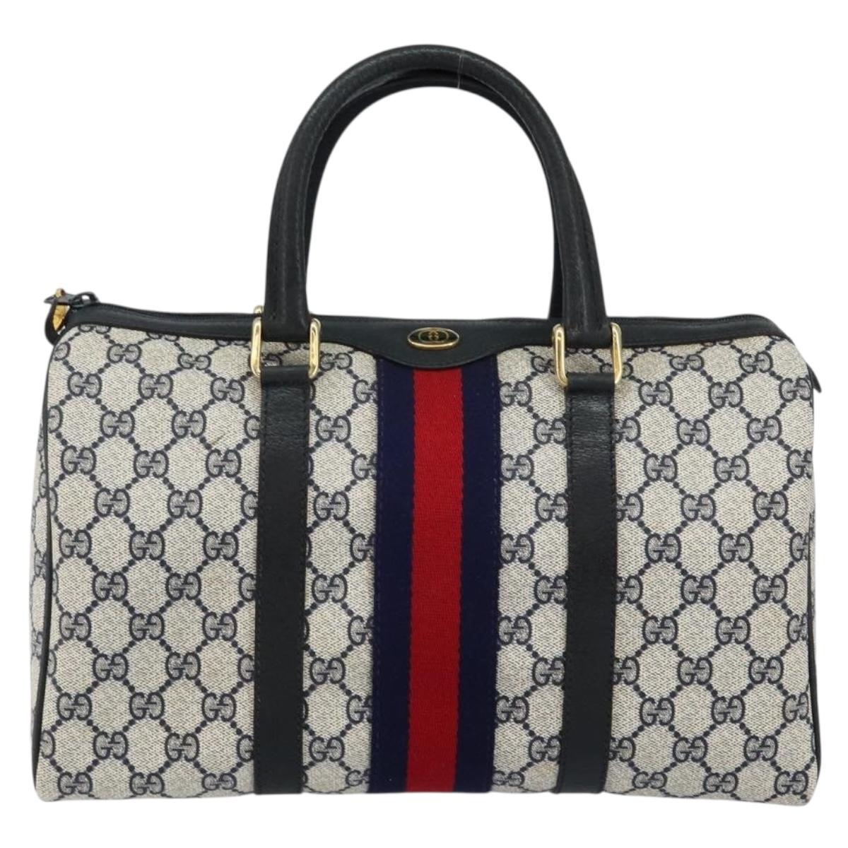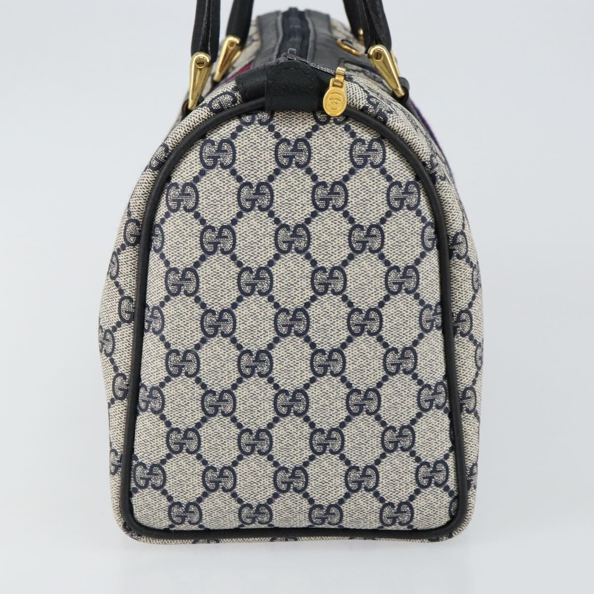GUCCI GG Supreme Sherry Line Boston Bag PVC Navy Gold Red - 143577
