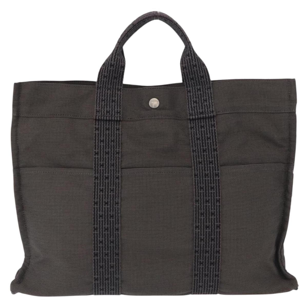 HERMES Her Line MM Hand Bag Canvas Gray Silver - 153785
