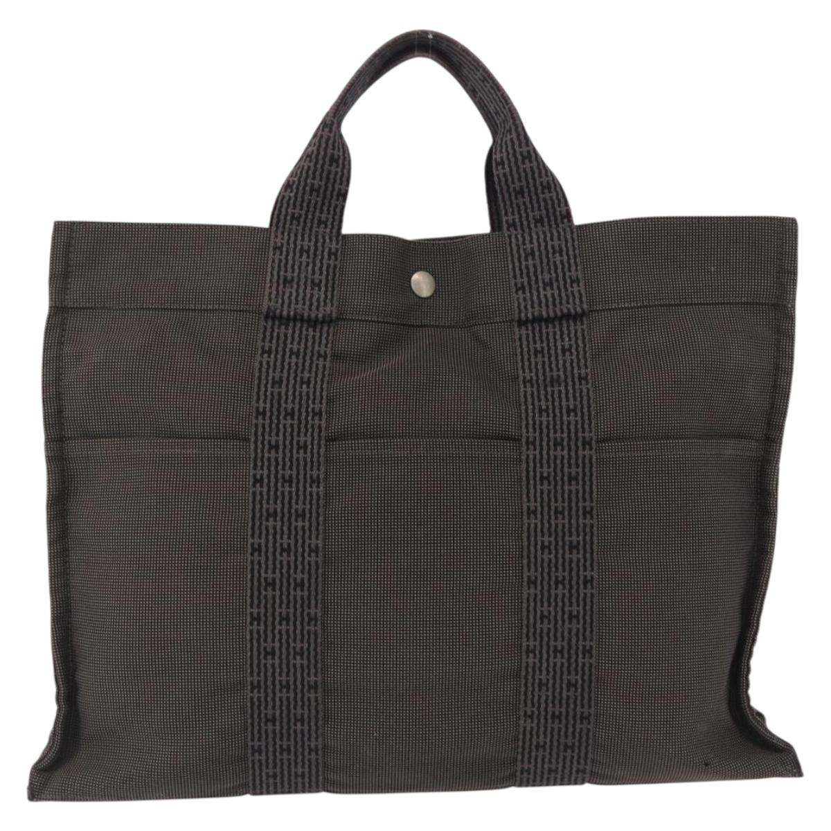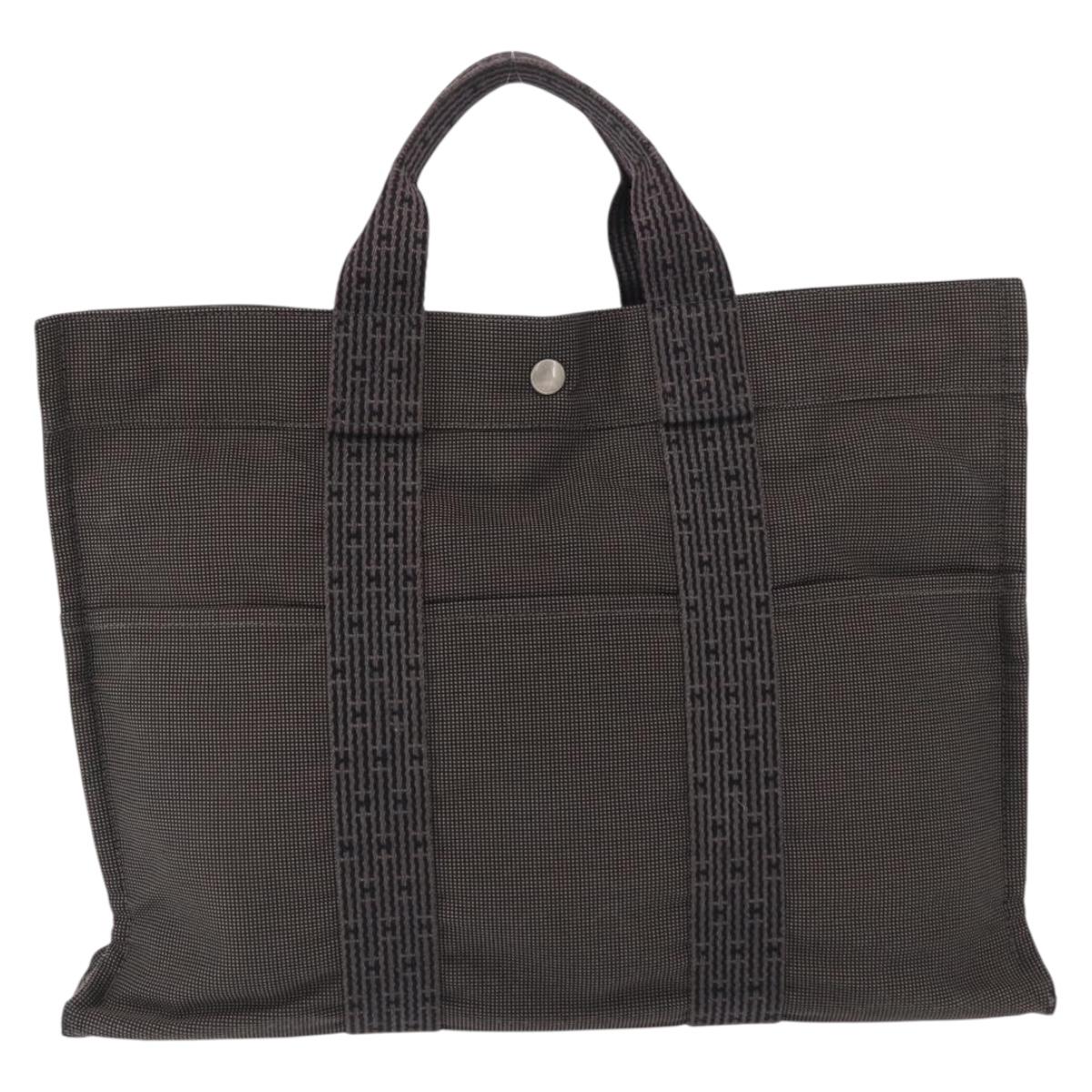 HERMES Her Line MM Hand Bag Canvas Gray Silver - 163158
