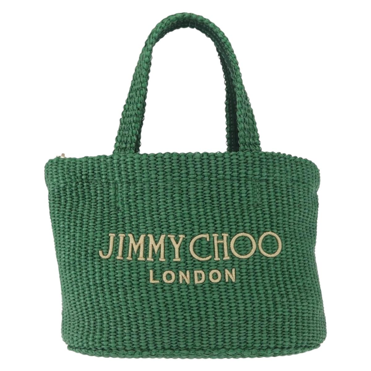 Jimmy Choo Hand Bag Raffia 2way Green Gold - BA9200