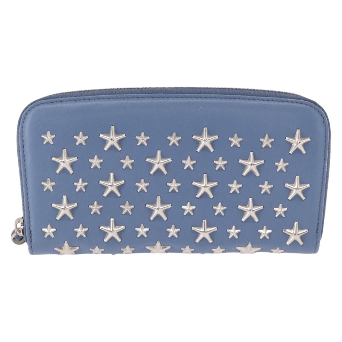 Jimmy Choo Studs Long Wallet Leather Blue Silver - ka1555
