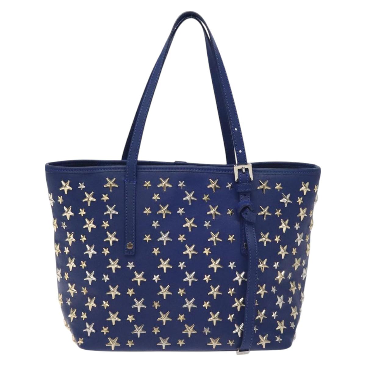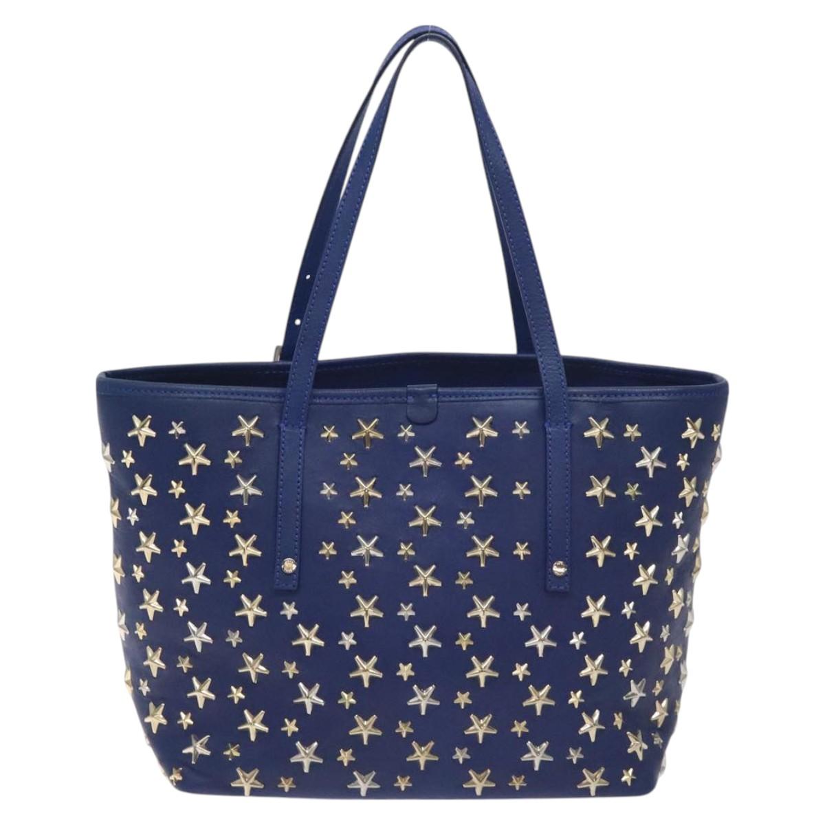 Jimmy Choo Studs Tote Bag Leather Blue Gold - 130222