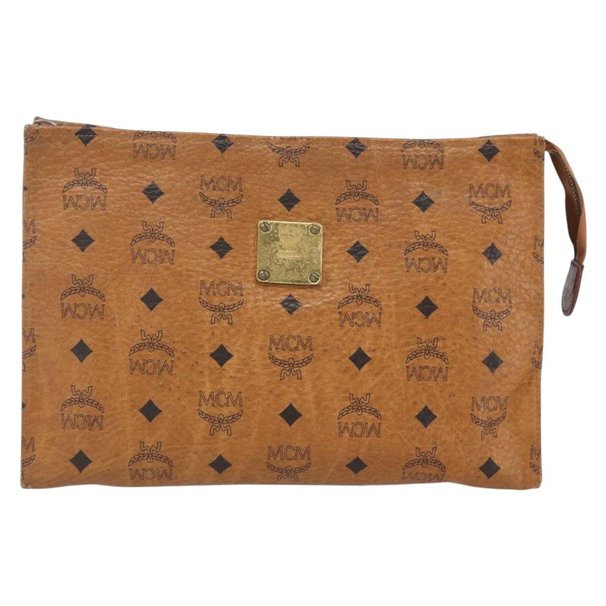 MCM Logogram Vicetos Clutch Bag PVC Leather Brown Gold - bs32590