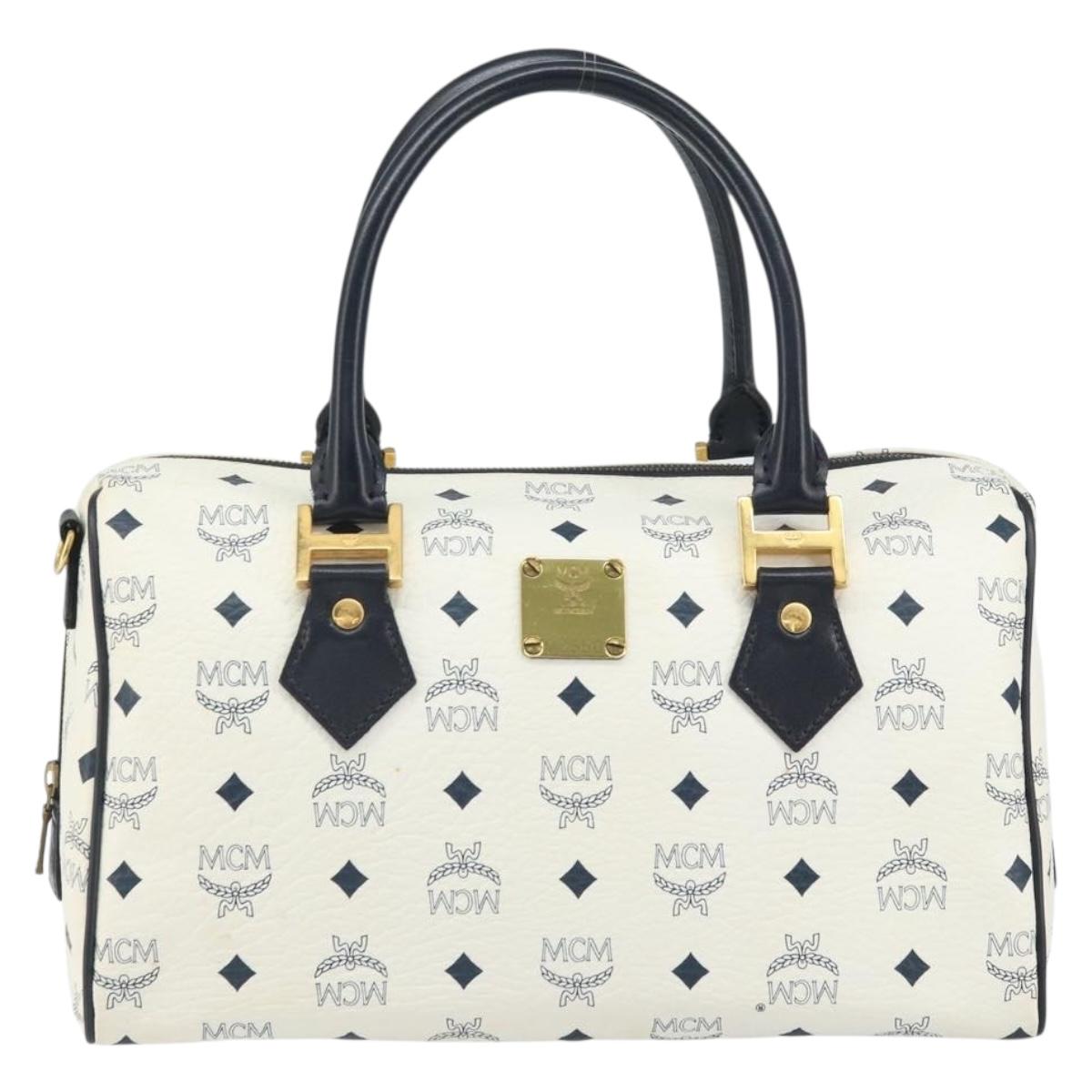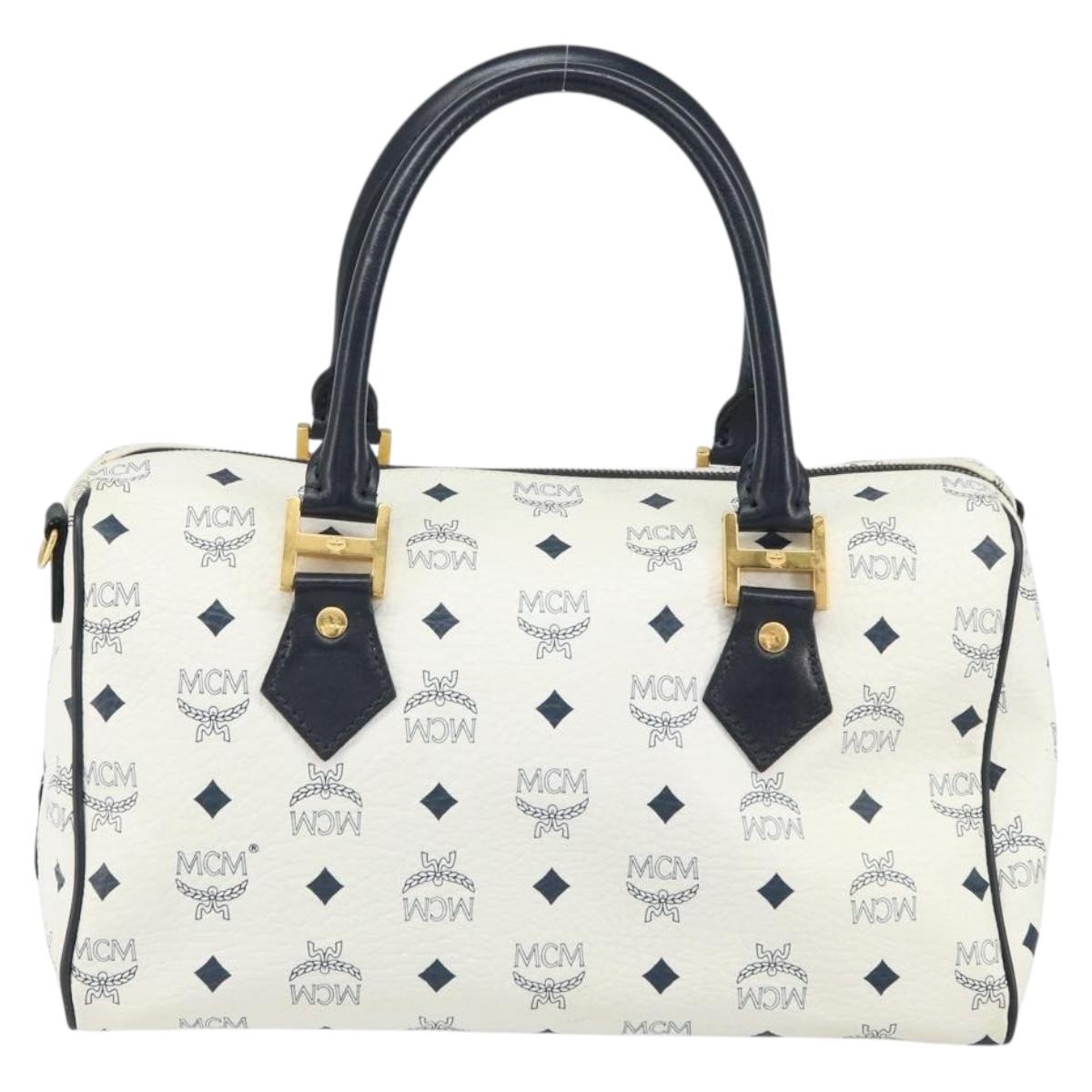 MCM Vicetos Logogram Boston Bag PVC Leather White Gold - 163545